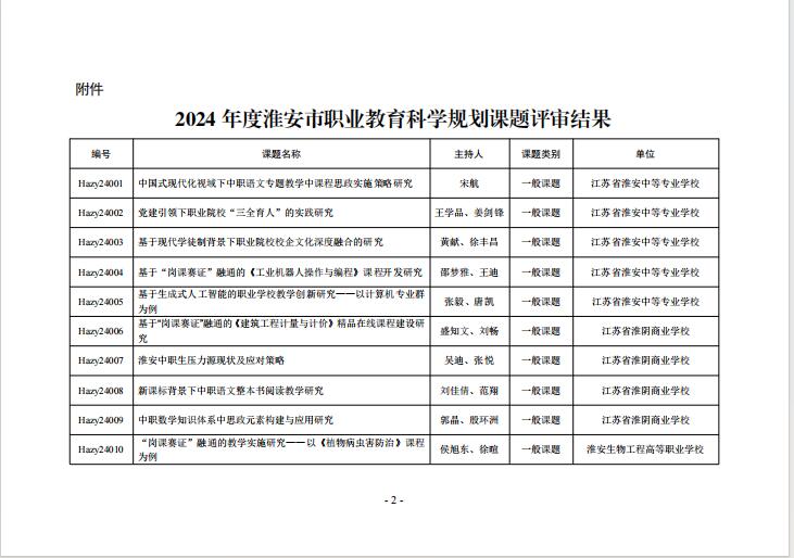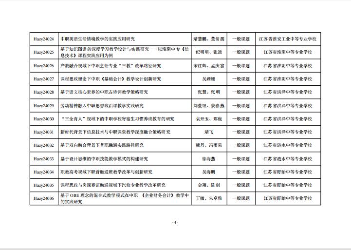 团队负责人江伟获批淮安市职业教育教学研究“十四五”规划2024年度立项课题