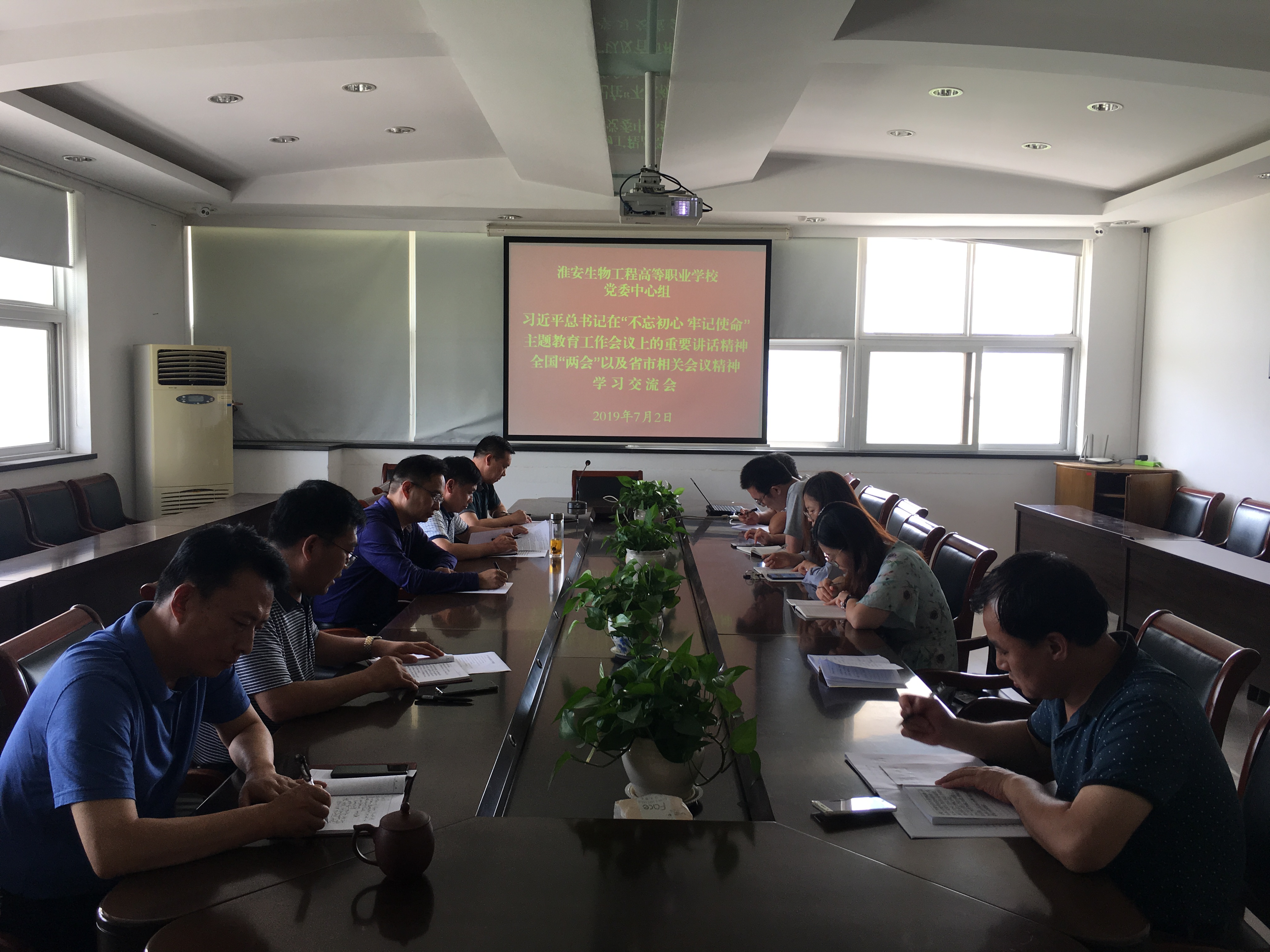 7月2日下午,淮安生物工程高等职业学校党委中心组(扩大)在行政楼三楼会议室召开学习习近平总书记在“不忘初心 牢记使命”主体教育工作会议上的重要讲话精神和全国“两会”以及省市相关会议精神专题学习会。校领导班子成员、教学党支部和后勤党支部党员代表参加了学习会。