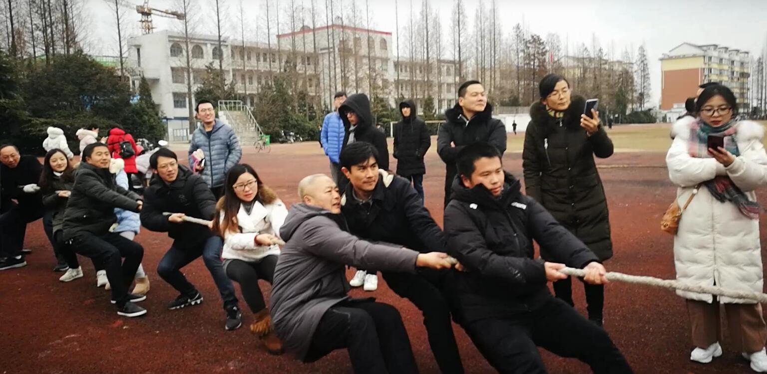 2019年1月9日下午,灰蒙蒙的天空中飘着小雪珠。但是,寒冷的天气并没有冷却大家比赛的热情。“加油!加油……”淮安生物工程高等职业学校的操场上回荡着气势如虹的呐喊声,一场激烈的迎新年拔河比赛正在如火如荼地展开。
