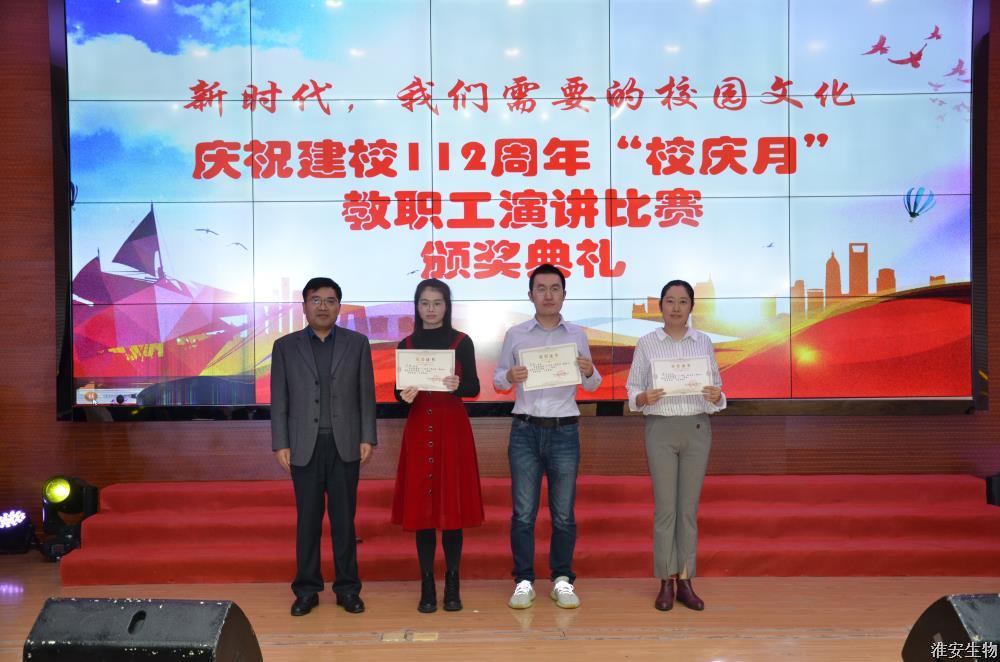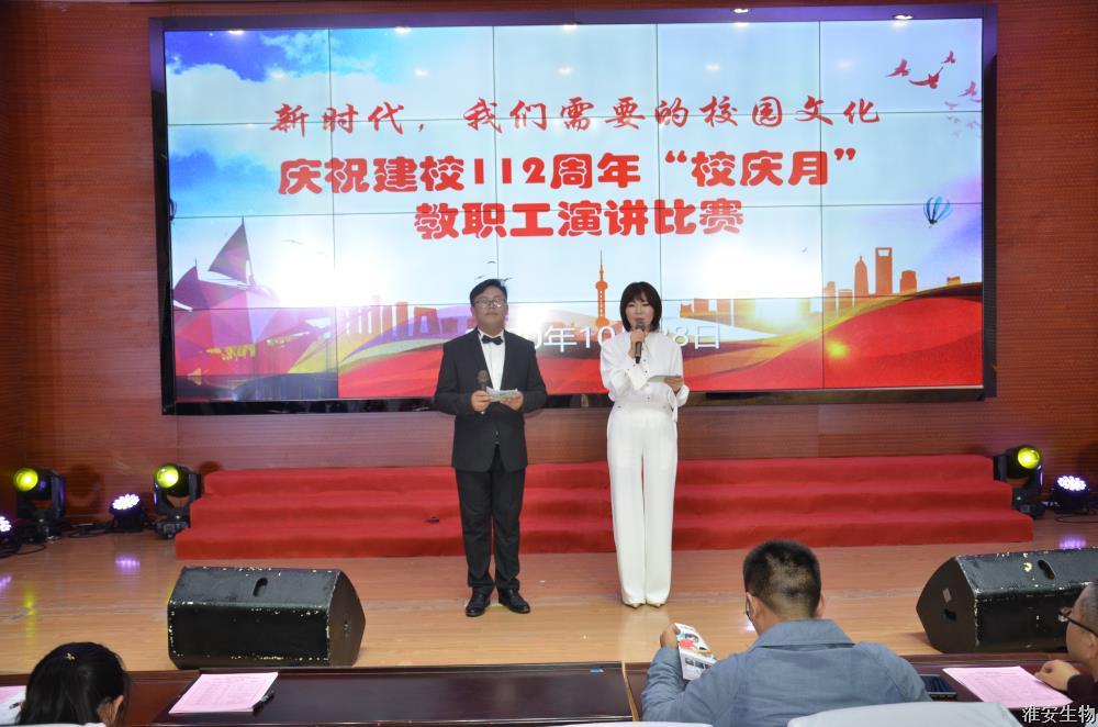 为庆祝建校112周年,进一步加强校园文化建设,促进广大师生员工自觉用校园文化引领自身行为,推动学校铸魂工程的深入开展, 10月28日下午,淮安生物工程学校在行政楼报告厅举办了 “新时代,我们需要的校园文化”教职工主题演讲比赛。副校长赵守东、纪委书记王坚、党委副书记石国安出席活动。全体教职工和部分学生代表观看了比赛。