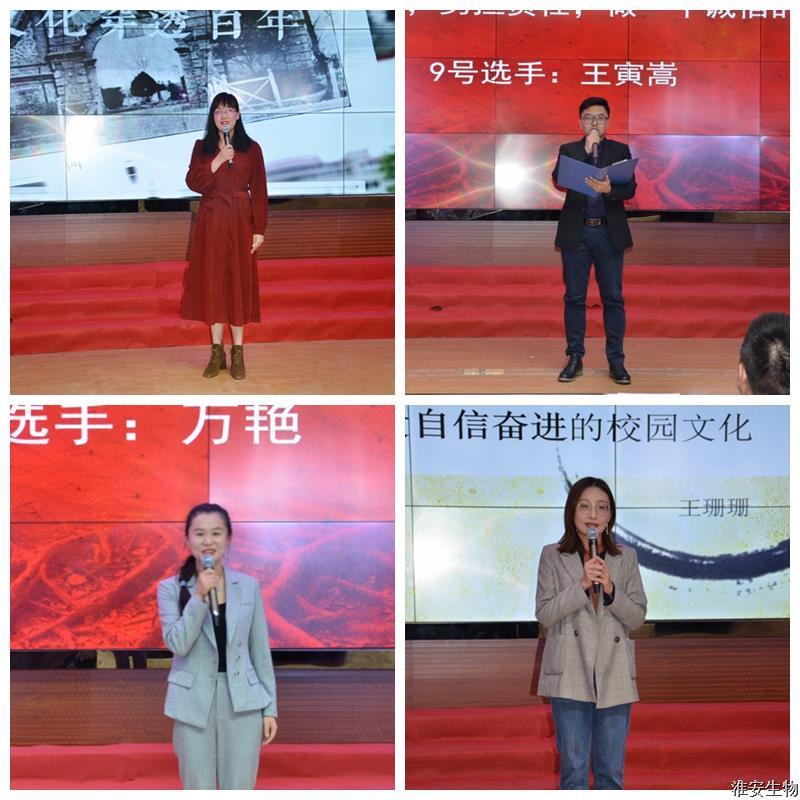 参赛选手声情并茂的演讲深深吸引了观众。会场不时爆发出热烈的掌声。他们通过一个个生动的案例,畅谈了什么是新时代的校园文化,什么是淮农精神……现场观众深受感染和鼓舞。