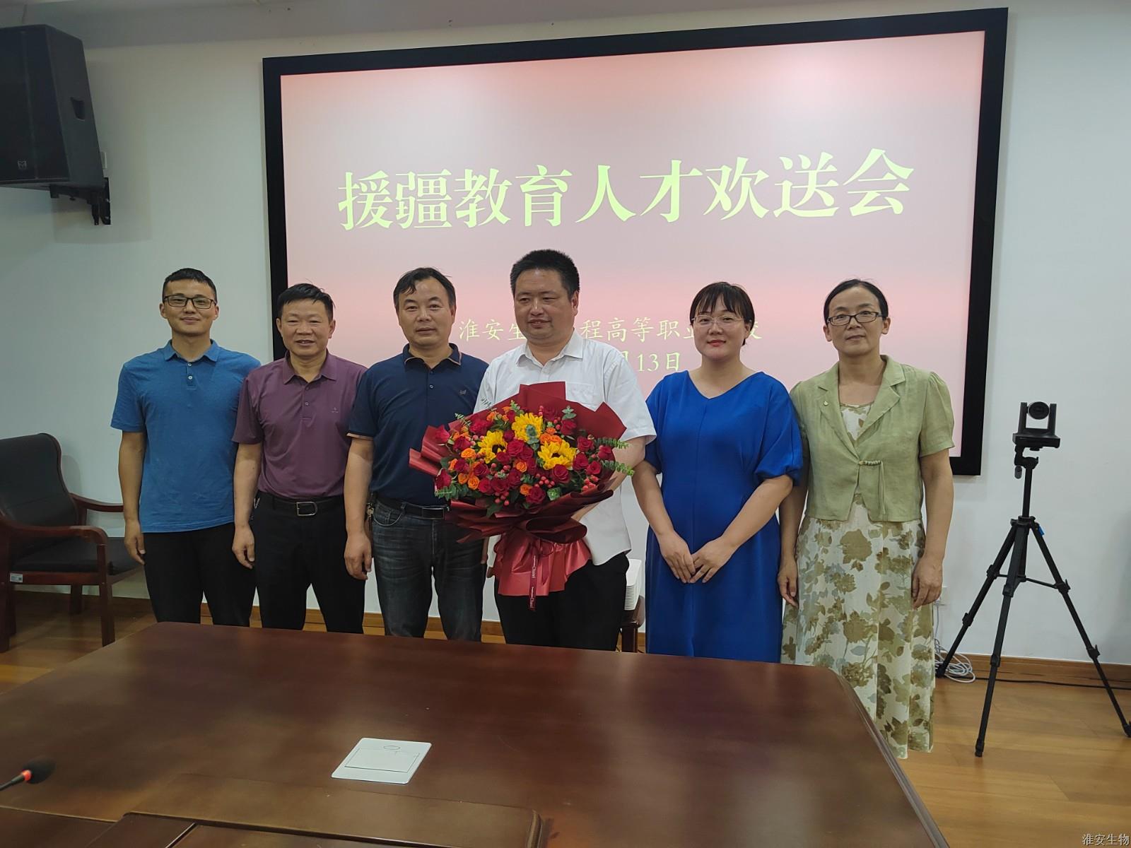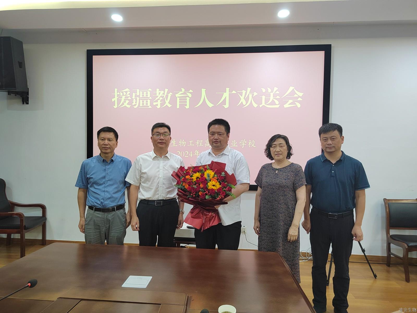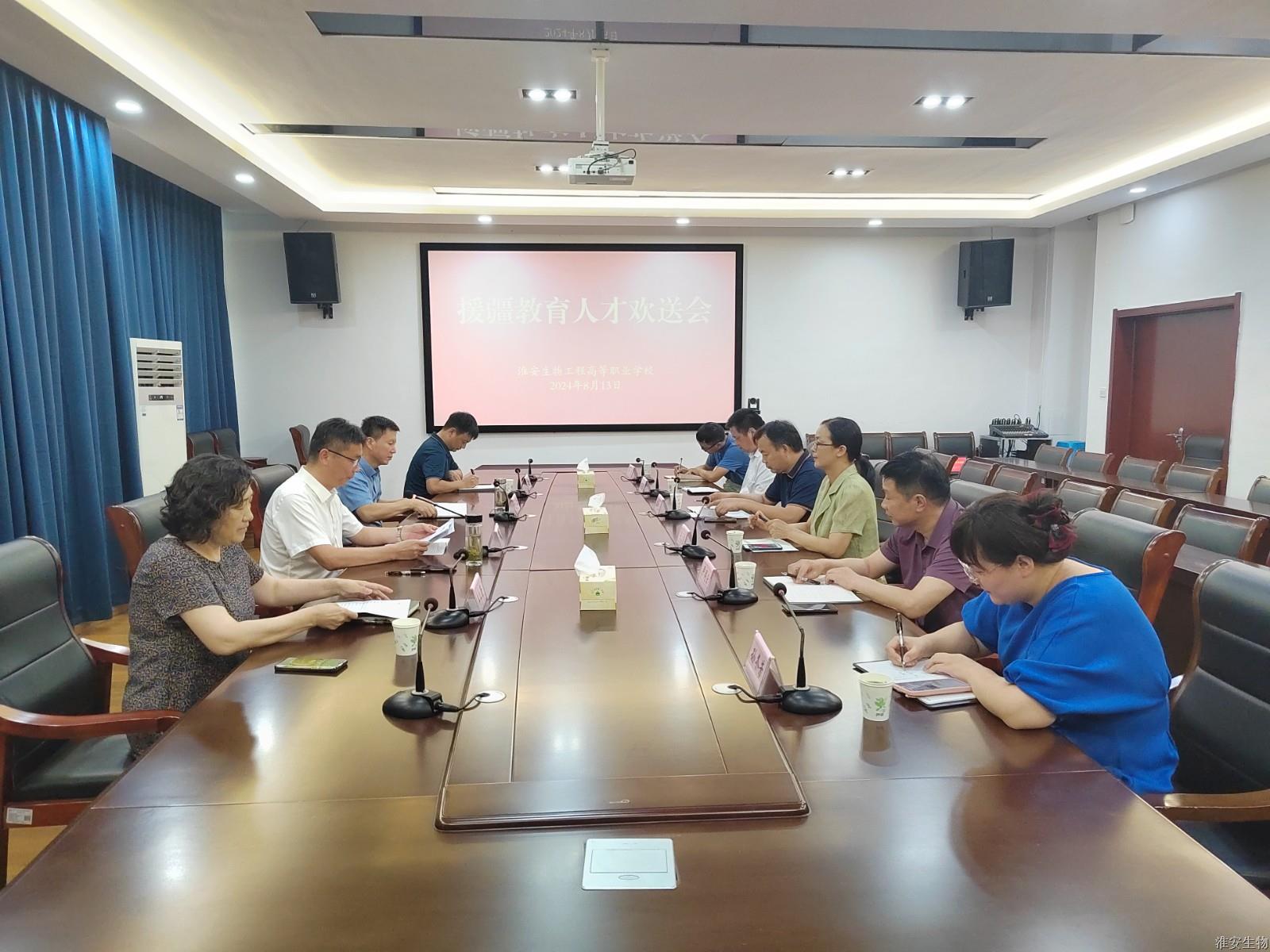 8月13日,淮安生物工程学校举行了一场温馨而庄重的援疆教育人才欢送会。此次欢送会旨在为图文信息中心主任蔡小全同志践行,他即将作为援疆教育人才踏上新的征程。校党委书记、校长韩永胜主持会议并讲话,全体领导班子成员、有关部门负责同志参加欢送会。
