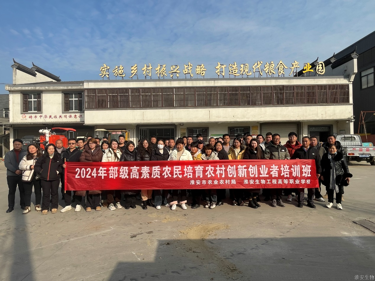 2025年1月3日至10日,淮安生物工程学校顺利组织开展2024年部级高素质农民培育淮安市农村创新创业培训。本次培训得到市农业农村局和各县区农业主管部门的大力支持,淮安市农广校校长邢国文、淮安生物工程学校副校长禹立馨、成教处处长胡春林及各县区领队出席开班仪式,来自7个县区的各类农业经营主体计100人参加了培训。