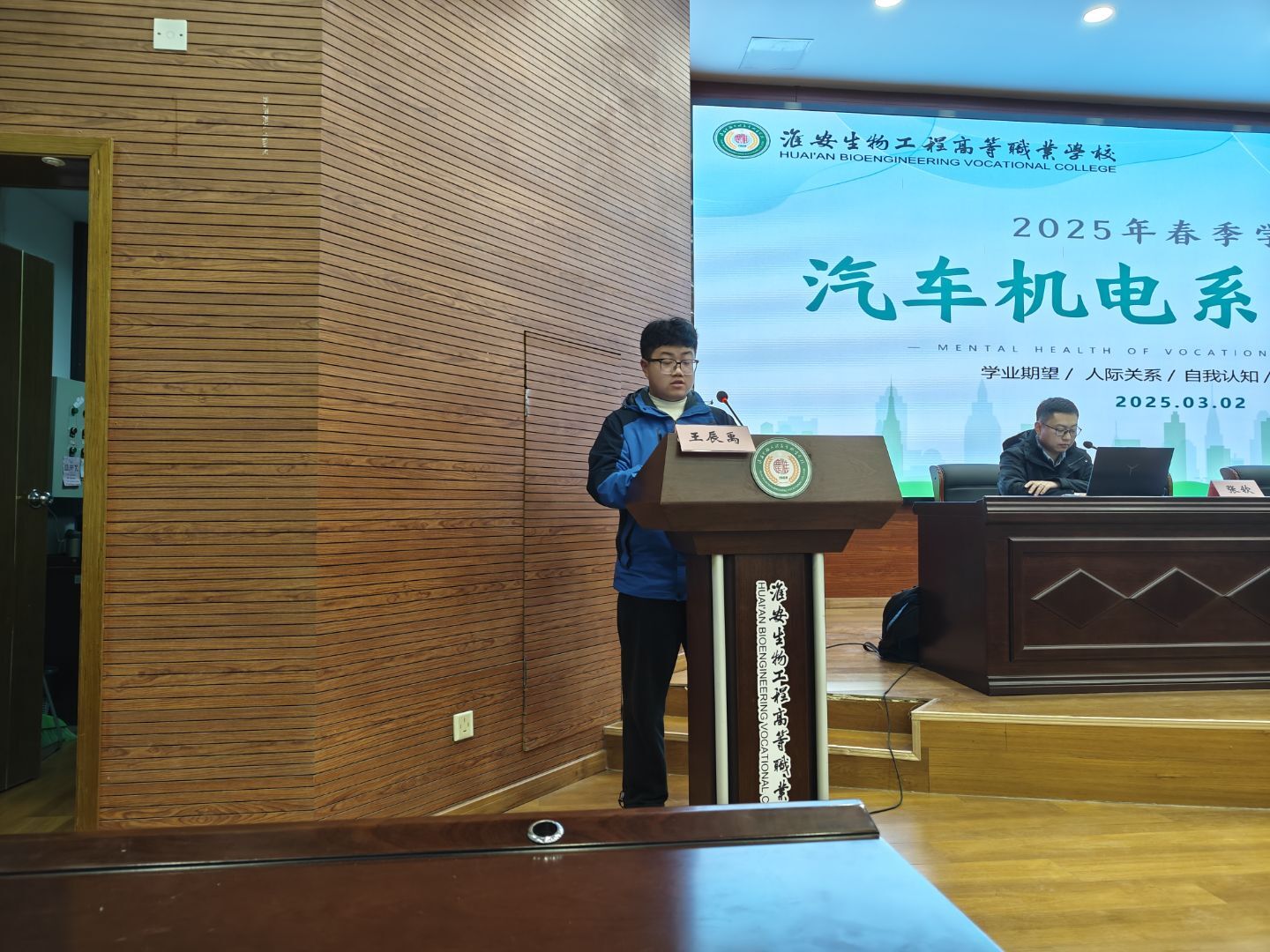 学生代表王辰禹以自己的成长经历为例,分享了在学习和生活中如何面对压力、调整心态的心得体会,并表达了对家长和老师的感激之情。