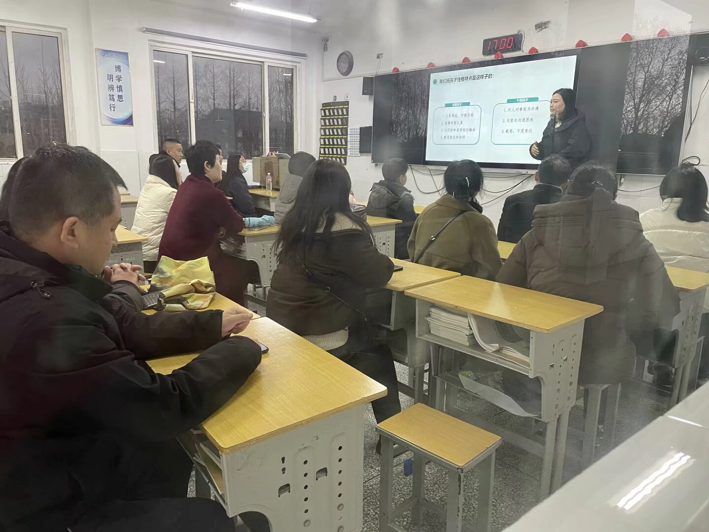 分班会议中,家长们与班主任及育人导师进行深入交流。班主任向家长汇报了班级学期情况和学生心理健康状况,全面展示了学生的成长轨迹;结合具体案例,向家长讲解了青春期学生常见的心理问题及应对策略,帮助家长掌握科学的心理教育方法;通过班级典型案例深入剖析了学生在学习、生活中可能遇到的心理困扰,提出家校合作的具体建议。双方积极互动,共同探讨如何更好地支持孩子的心理健康发展。