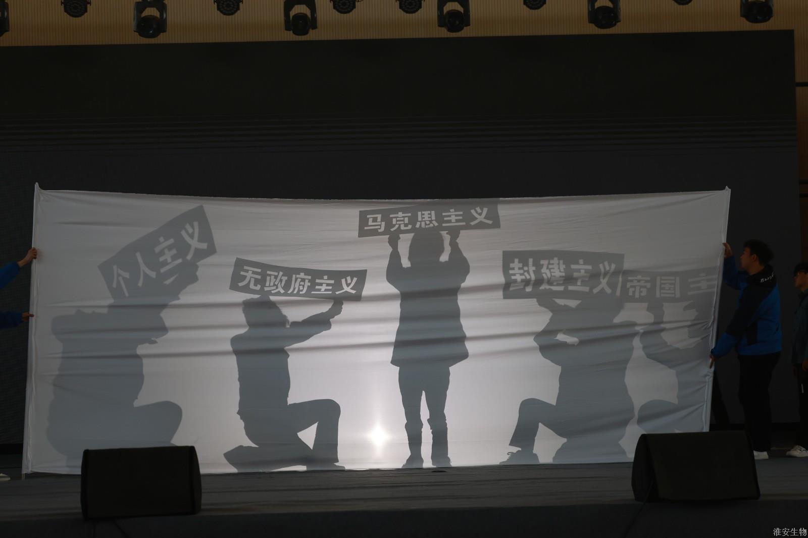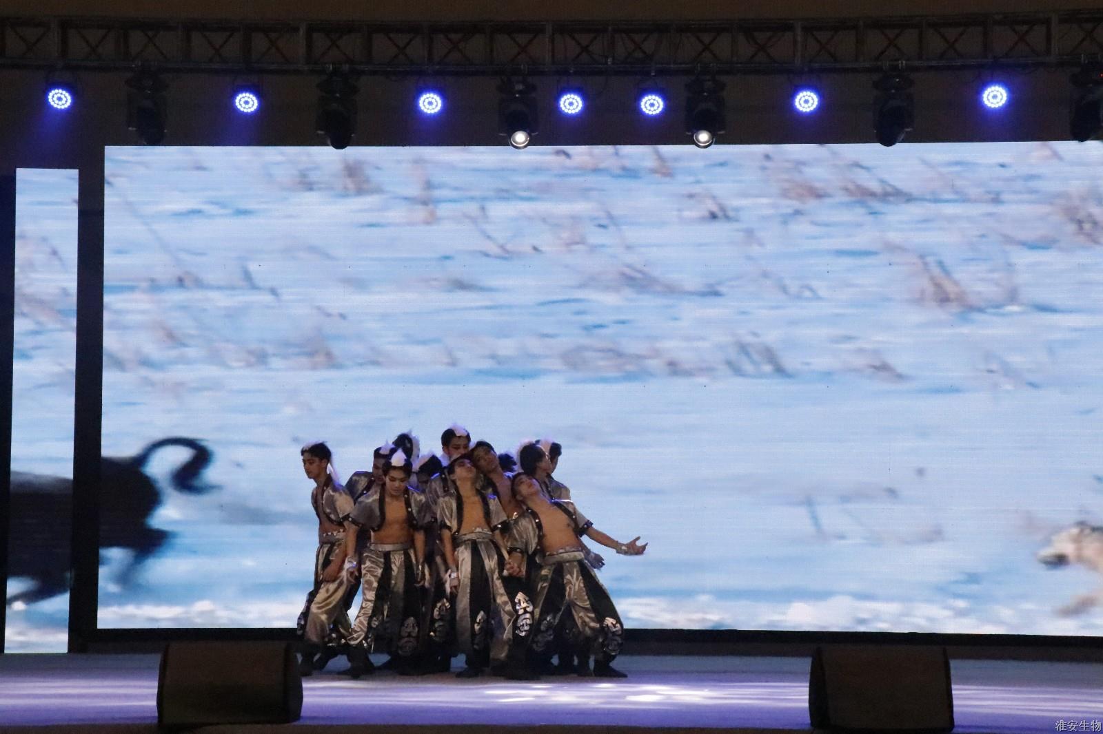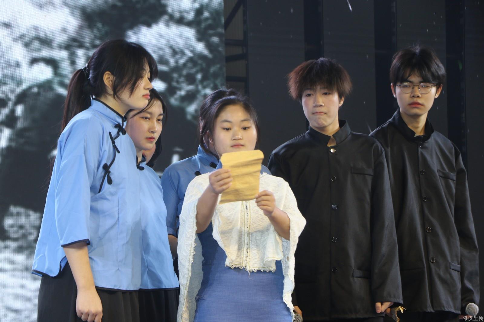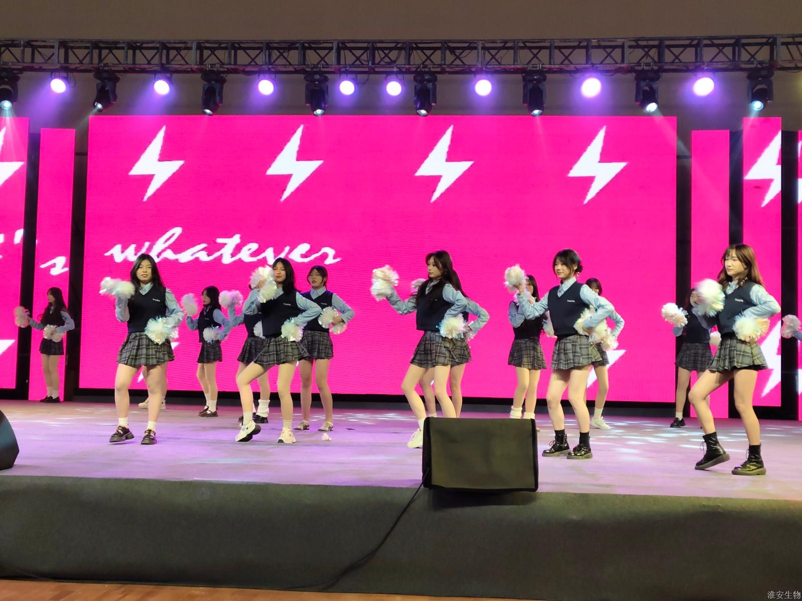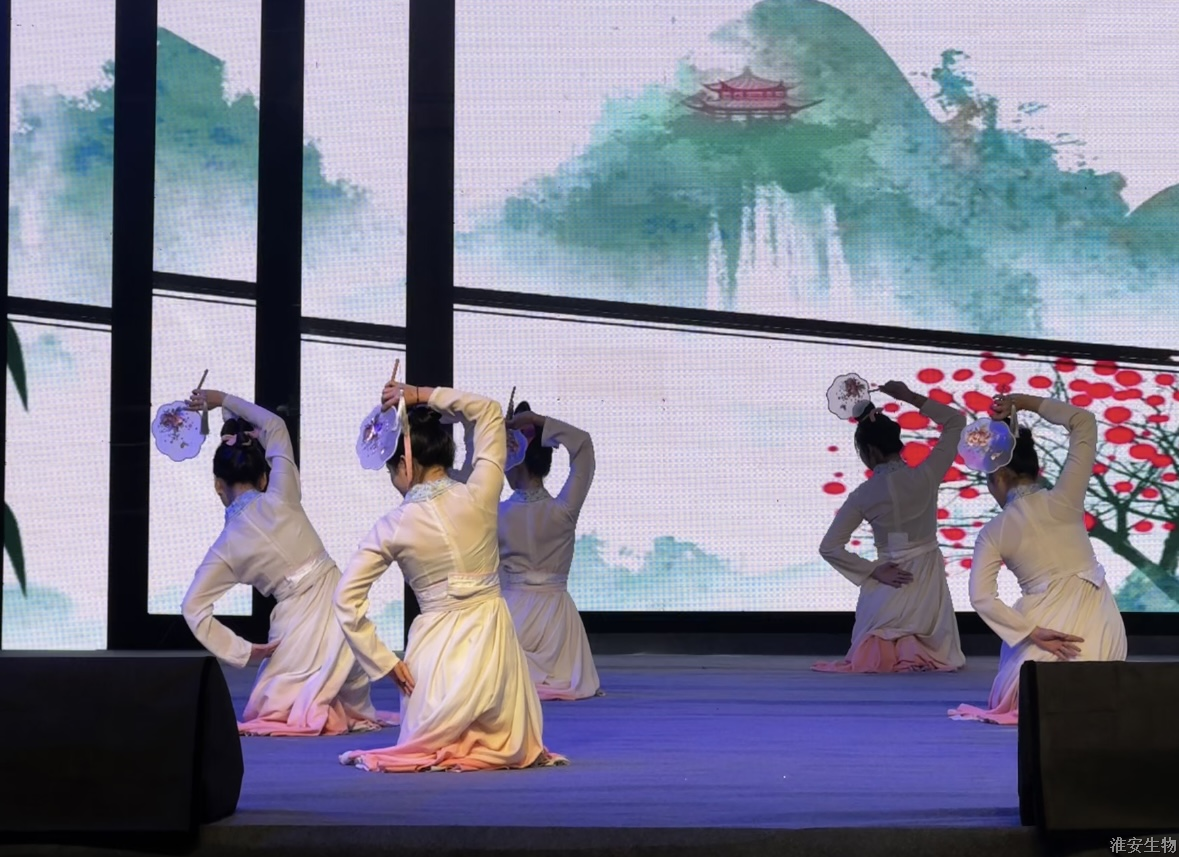“从兰亭曲水到烽火狼山,文明的密码在血脉中永恒。”《兰亭序》、《旗舞中华》、《四季风华》、《湖心丽影》等节目将诗词、武术、戏曲等传统元素注入现代表达,让观众仿佛置身历史长河。“秋瑾的呐喊穿越时空,红船的光影照亮前路。”诗朗诵《秋瑾》以沉浸式体验叩击心灵,激荡灵魂。《光影红船路》以光和影的明暗变幻,为我们呈现一幅幅难忘的复兴之路。话剧《火种·农魂》取材校史,红色基因与校史记忆的交织,让革命精神具象为可感可知的精神图腾。机高2101等班级带来的球类操《青春律动》将篮球操、乒乓球操、羽毛球操和跆拳道、双截棍展示融为一体,展现了淮农学子的青春活力与激情。红石榴歌舞团带来的《丝路花语》以古老的丝绸之路为背景,融合了新疆独特的民族风情与绚烂的文化色彩。舞者们身着华丽的民族服饰,翩翩起舞,如同丝路上绽放的朵朵鲜花,传递着民族团结与和谐共处的美好愿景。当敦煌飞天的飘带遇上《APT》啦啦操的活力节拍,当《巾舞英雄》的传统舞狮与街舞韵律碰撞,多元艺术形态的交融,诠释"各美其美,美美与共"的融合智慧。