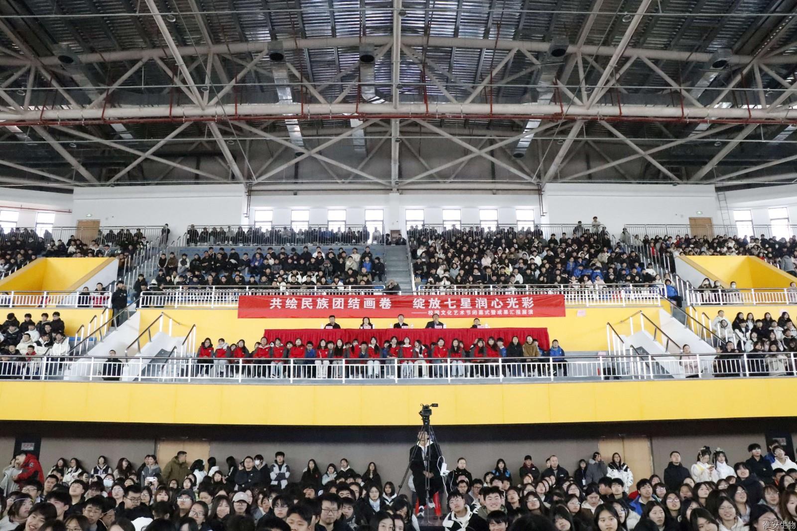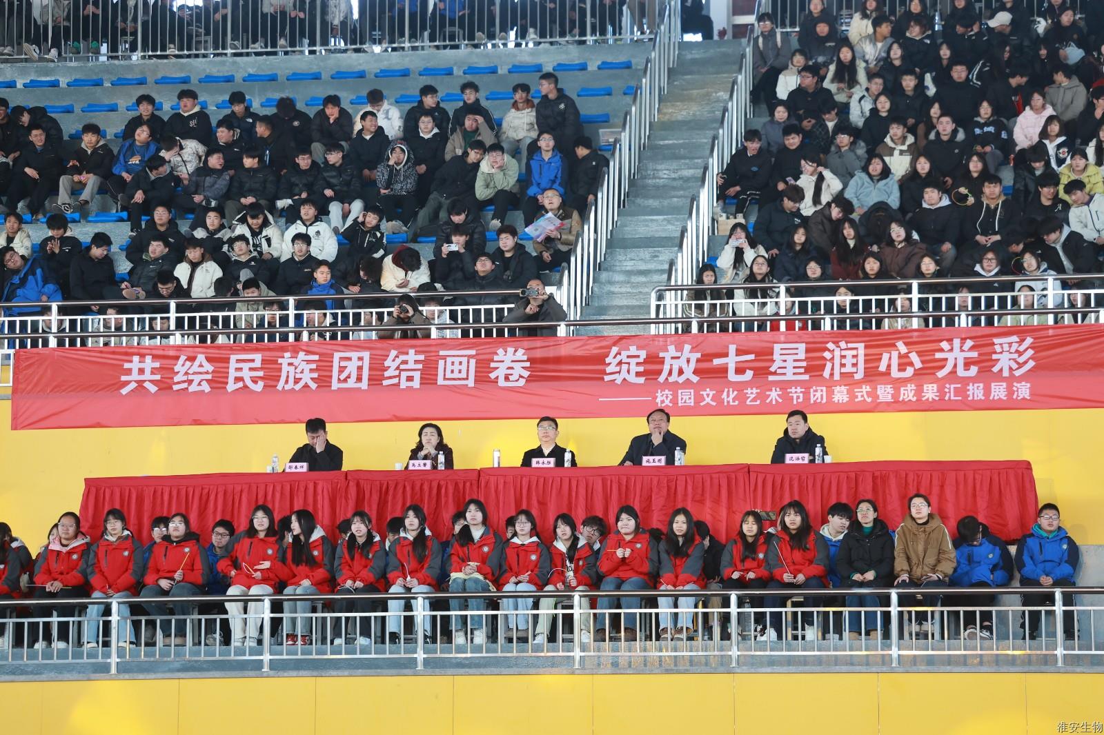 蛇年伊始,万象更新。3月6日下午,春日的暖阳映照着淮农校园的每个角落,一场精彩纷呈的闭幕式展演,为"七星润心"艺术节画上圆满句号。整场活动通过三大篇章、十余个原创节目,串联起淮农学子对中华文脉的传承、革命信仰的坚守与青春梦想的飞扬。校党委领导班子成员和全校四千多名师生齐聚新体育馆,以歌声抒发青春之志,唱响奋进之势,演绎时代心声。
