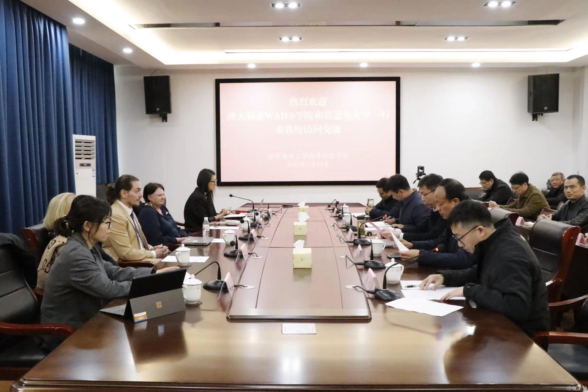 3月11日,澳大利亚WIFAS学院校长路易斯·爱德华兹与莫道克大学国际关系办公室主任乔尔·威特威尔一行访问我校。校党委书记韩永胜、校长施玉明、副校长邵春祥、各系部主任及合作交流处负责人参与会谈。