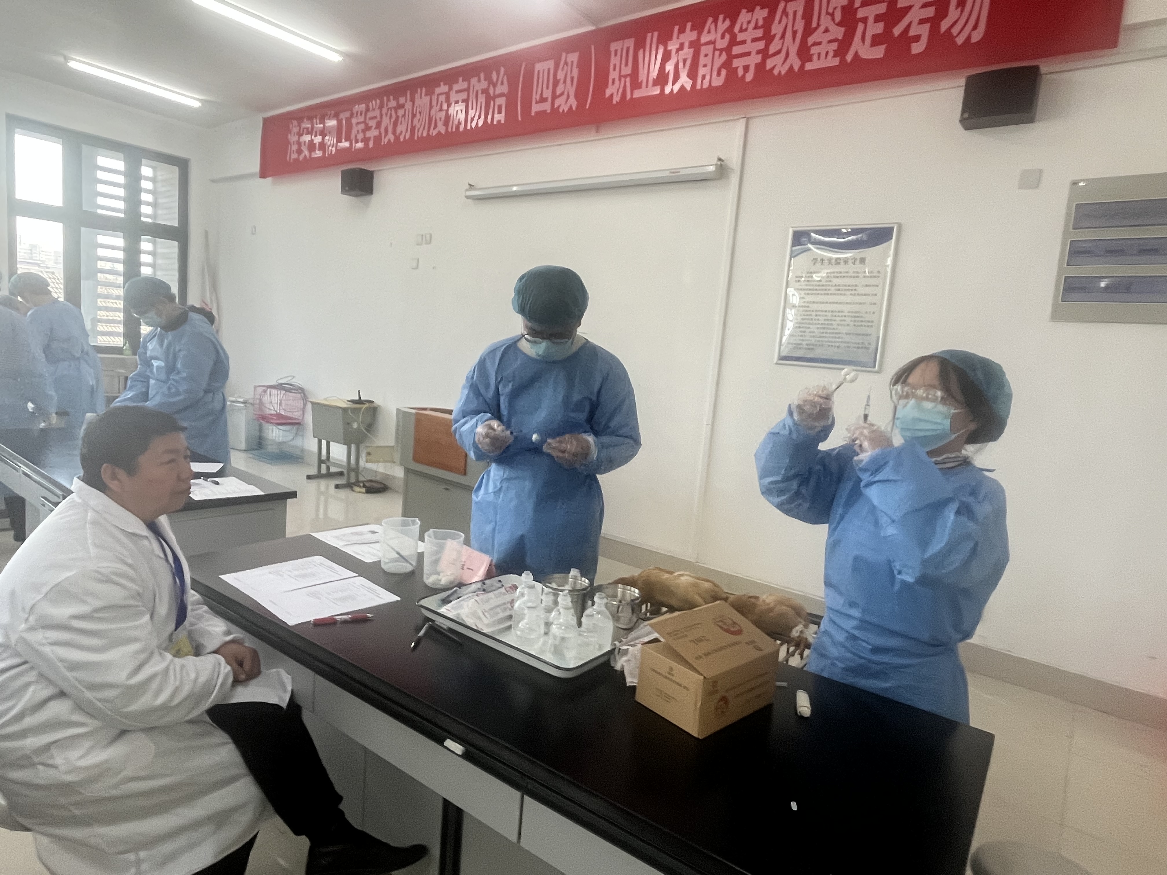 本次技能鉴定严格按照国家职业技能标准进行,实操技能考核则重点考察学生的动手操作能力,包括动物保定、动物疫病临床检查、动物疫病实验室诊断、动物疫病免疫接种、动物疫病治疗等技能。