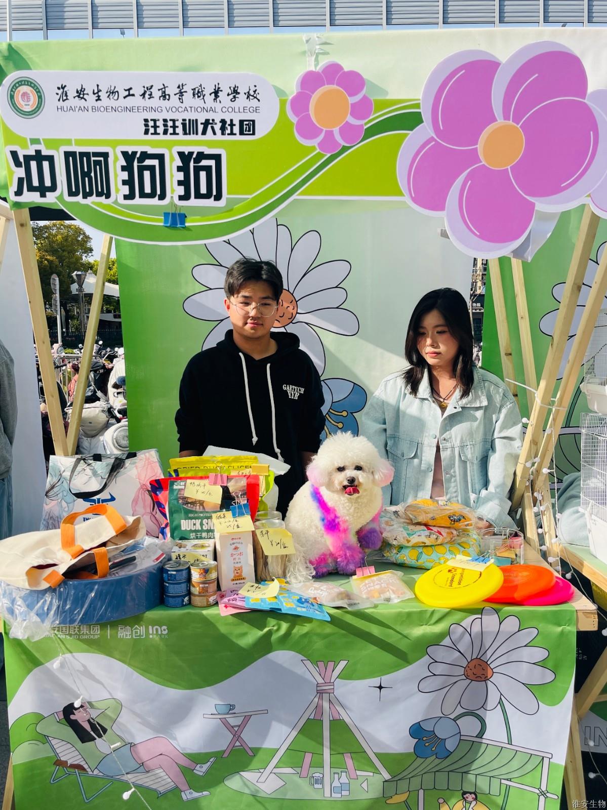 活动现场,7个摊位各具魅力。在时光记录社团的“蝶舞时簪·串忆摊”前,精致的手工饰品在阳光下闪烁着温润光泽,社团成员们耐心为市民讲解手工制作背后的故事;观赏鱼社团的“小黑养鱼记”摊位宛如一个微观水族世界,五彩斑斓的观赏鱼在透明鱼缸中自在游弋,引得众人驻足观赏;迷兔社团的“me too”摊位充满了俏皮与可爱,社团成员热情分享小动物喂养知识;汪汪训犬社团摊位前热闹非凡,可爱的狗狗们在学生的指挥下表演着各种精彩动作,引得现场阵阵喝彩;“爬宠乐园”和“怪宠小铺”展示了各种奇特的爬宠和异宠让现场市民大开眼界;“华裳融界”汉服社团的摊位前,传统服饰与古风发簪承载着时光的印记,同学们在现场讲解传统文化的博大精深,展示着传统文化的优雅与魅力。