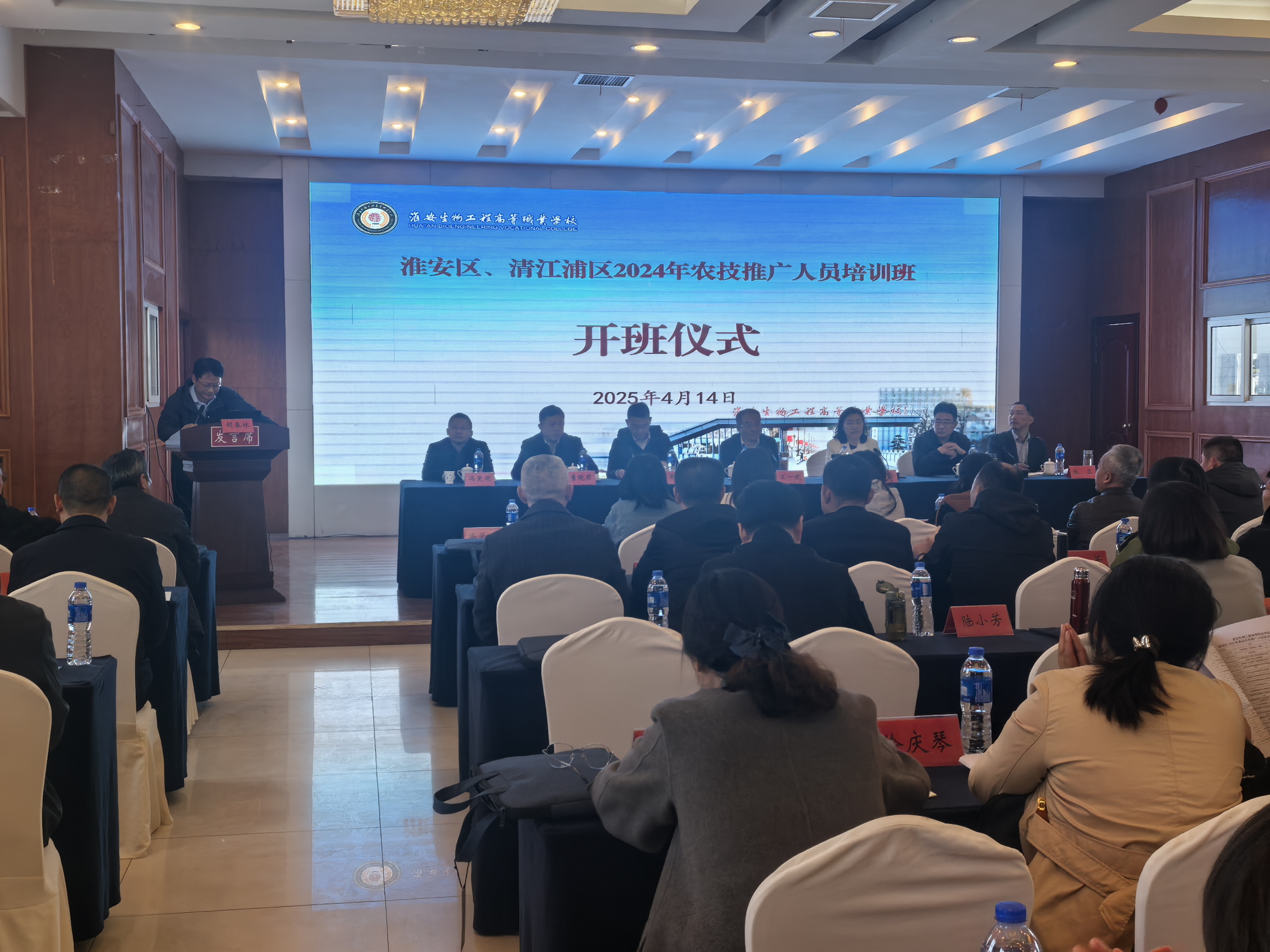 4月14日上午,培训班开班典礼在淮安宾馆神州厅隆重举行。淮安生物工程高等职业学校副校长禹立馨、淮安区农业农村局副局长单峰、清江浦区农业农村和水利局副局长王海波、淮安市农业农村局推广研究员王一线等领导出席典礼。活动由淮安生物工程高等职业学校成教处胡春林处长主持。