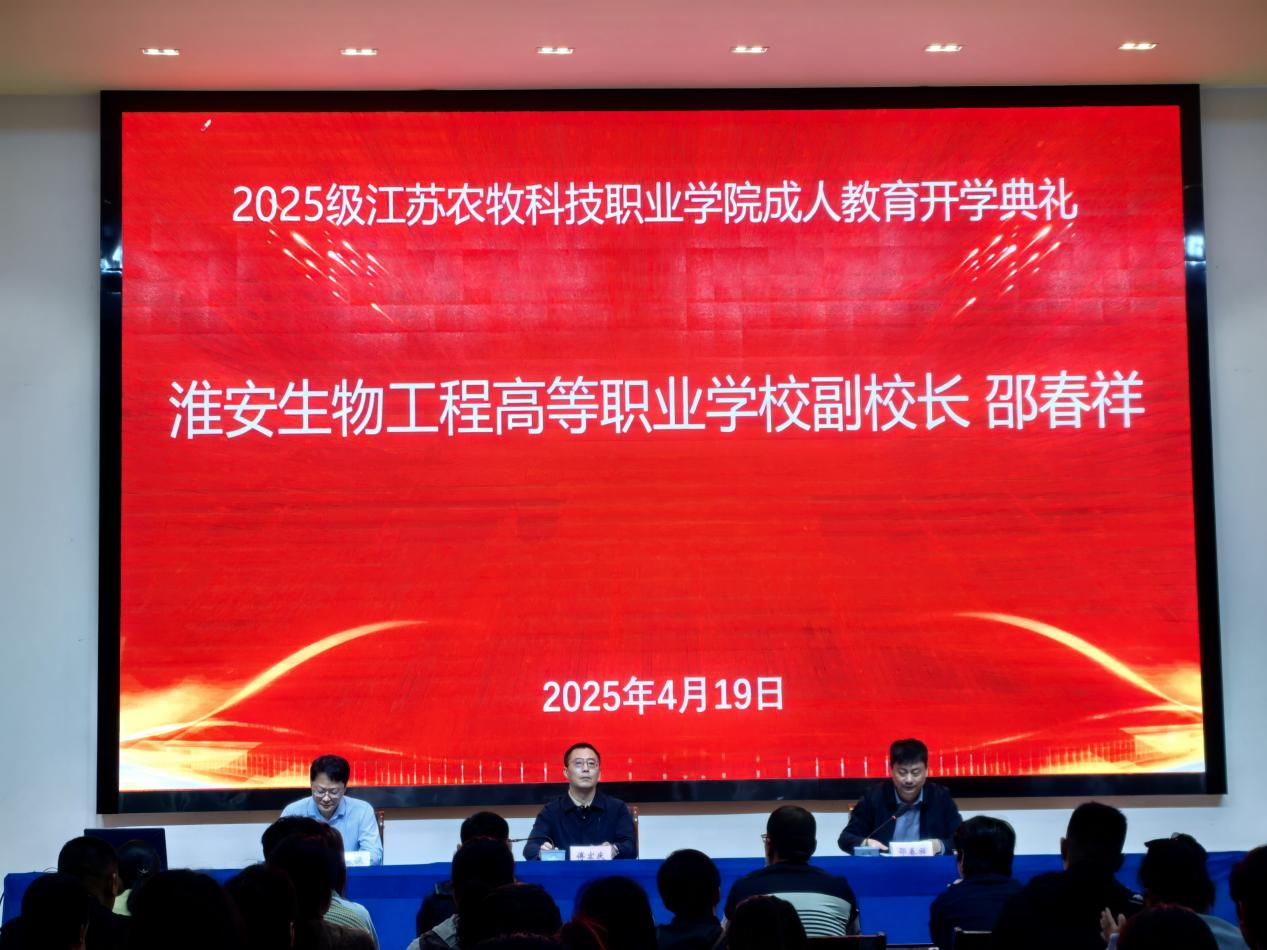 4月19日上午,2025级江苏农牧科技职业学院成人教育新生开学典礼暨入学教育在淮安生物工程学校农业实训楼124会议室举行,江苏农牧科技职业学院继续教育学院院长傅宏庆、淮安生物工程学校副校长邵春祥出席典礼,2025级全体新生、各班主任及任课教师代表参加典礼。典礼仪式由成教处处长胡春林主持。