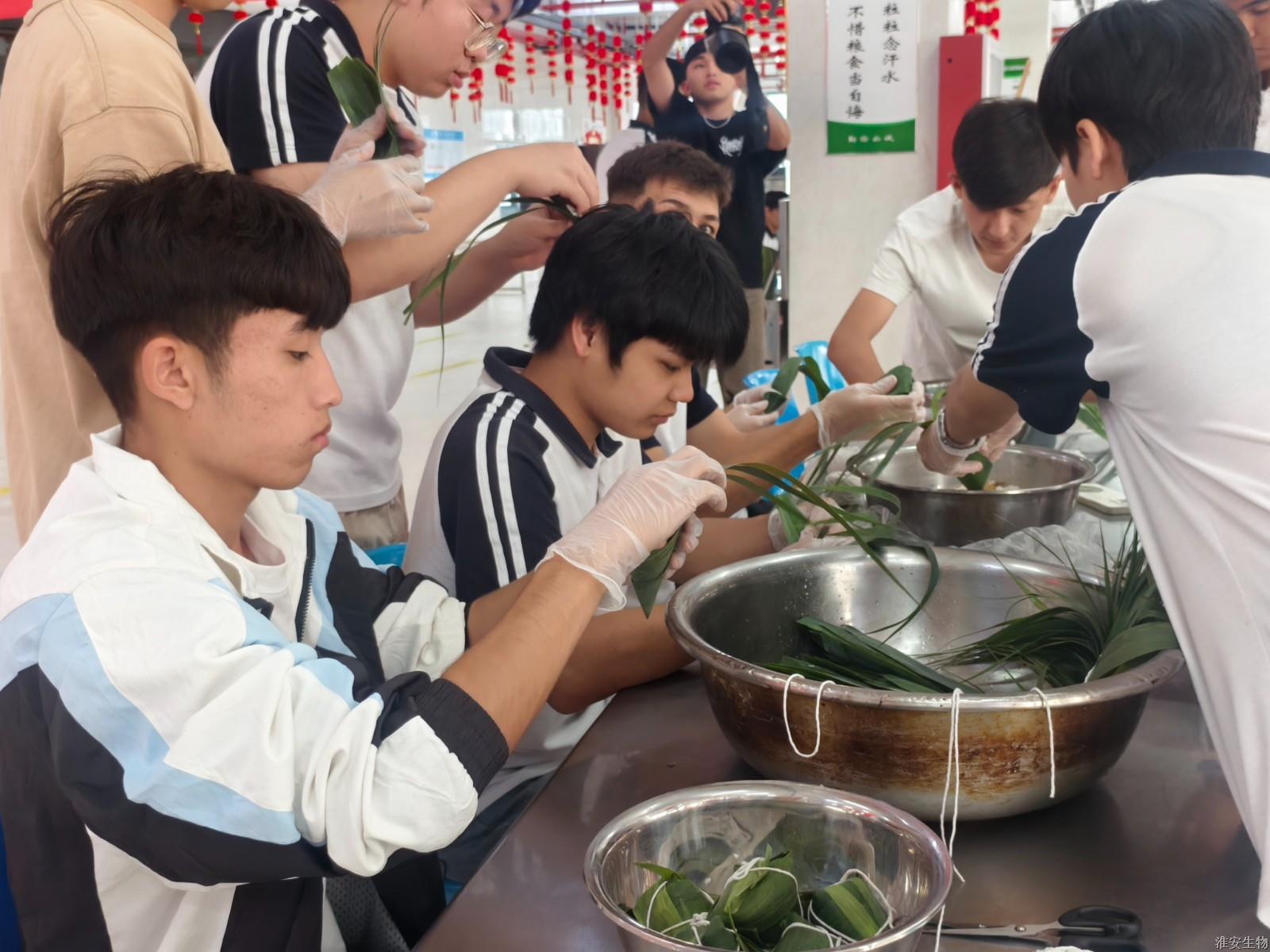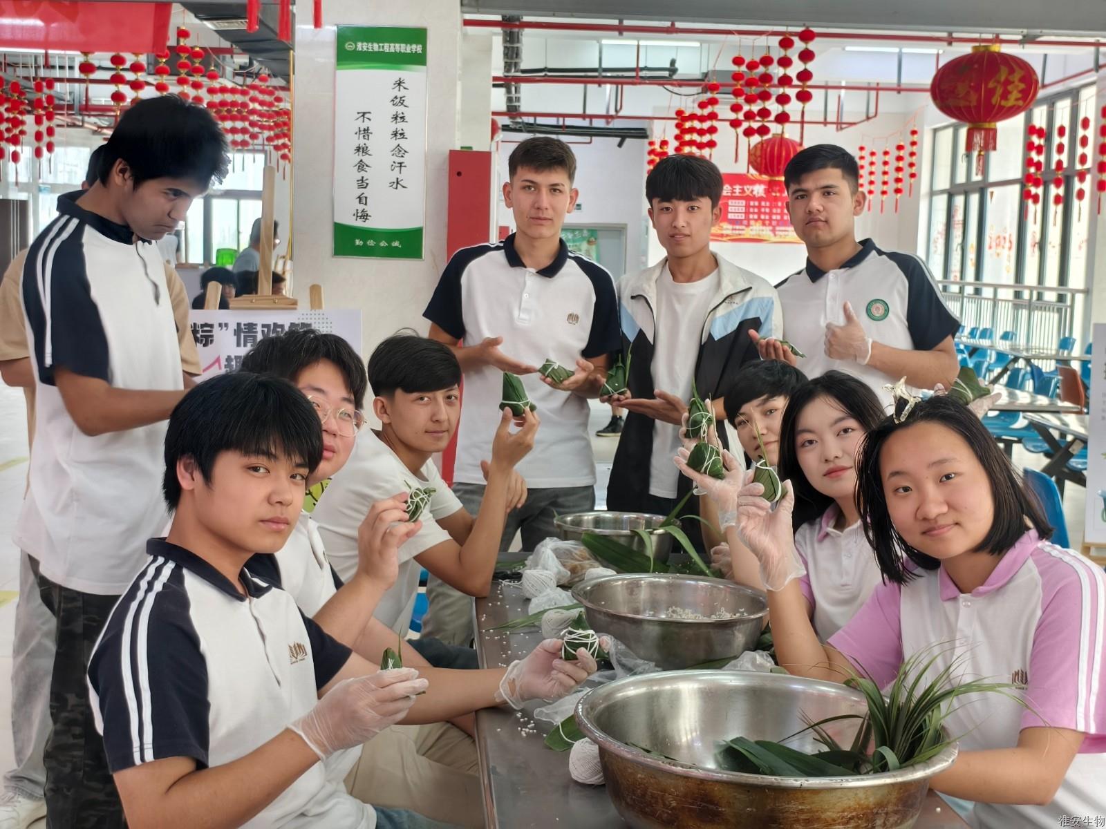 最热闹的当属包粽子环节。翠绿的粽叶、雪白的糯米、鲜红的蜜枣整齐排列,勾勒出一幅充满生活气息的端午画卷。在包粽能手的指导下,大家认真学习折粽叶、填馅料、捆丝线的技巧。尽管手法略显生疏,包出的粽子形态各异,但每一个都饱含着对传统节日的热爱与传承。当热气腾腾、清香四溢的粽子出锅时,浓浓的节日氛围与民族团结情谊在粽香中交融升华,温暖着每个人的心间。此次端午系列活动,既是一场传统文化的饕餮盛宴,更是一次民族团结的生动实践。各民族师生在共同参与中增进了解、加深友谊,让中华优秀传统文化成为凝聚民族情感的精神纽带。淮安生物工程学校将继续以文化为桥,开展更多形式新颖的主题活动,让民族团结之花在传统文化的滋养下绚丽绽放,谱写中华民族共同体建设的新篇章。