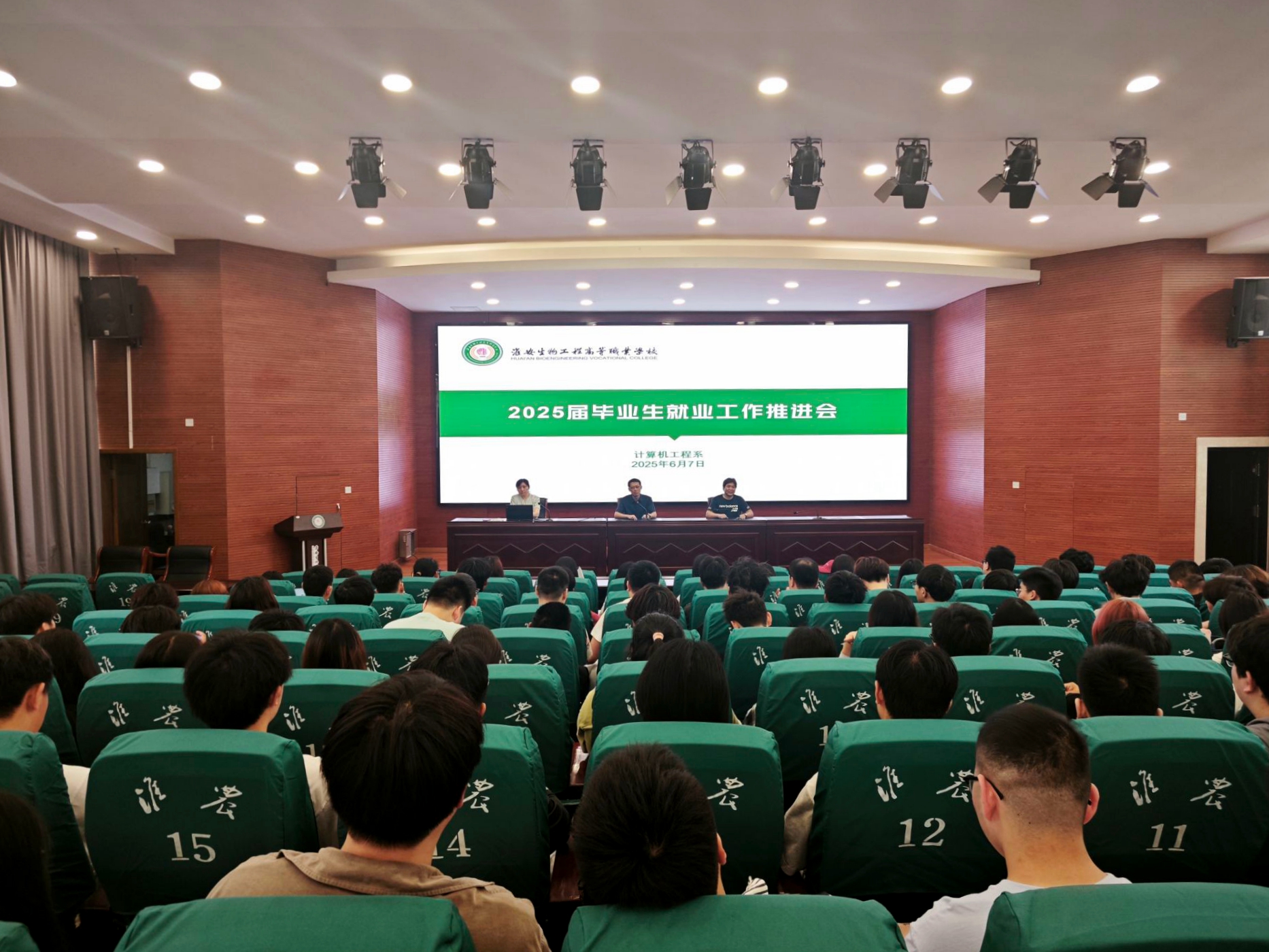 为更好地开展毕业指导和就业服务工作,帮助2025届高职毕业生了解就业形势和政策,6月7日上午,计算机工程系在校多功能报告厅召开2025届高职毕业生就业工作推进会,计算机工程系主任朱殷勤、副主任孙立洪、王亚丽出席会议,2020级全体高职学生和班主任参加了会议。