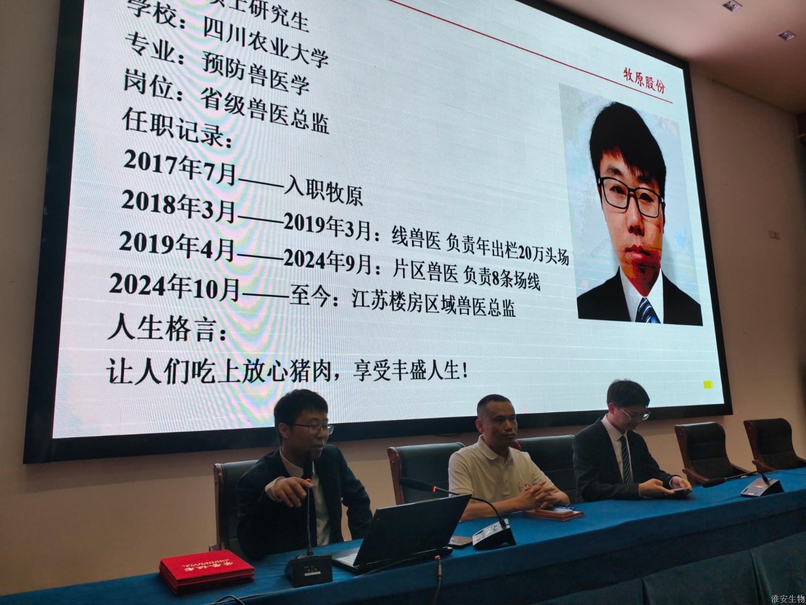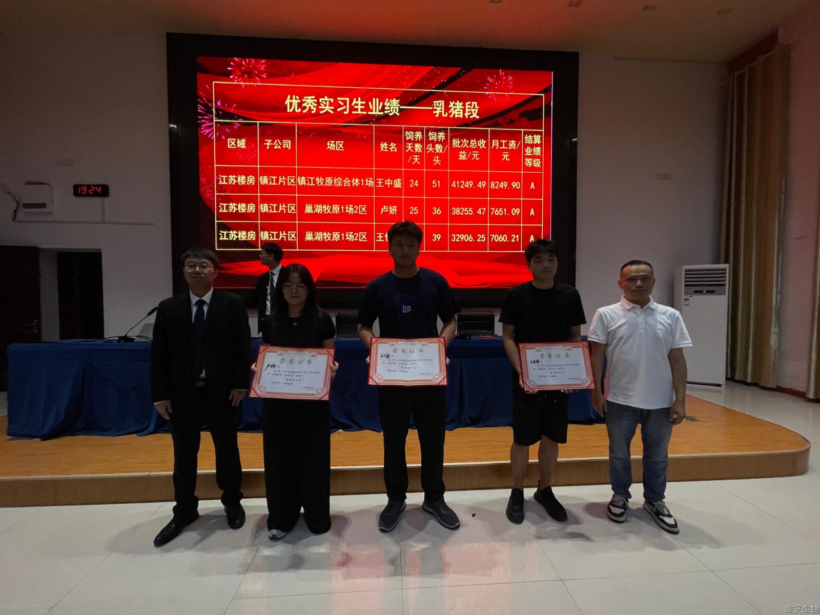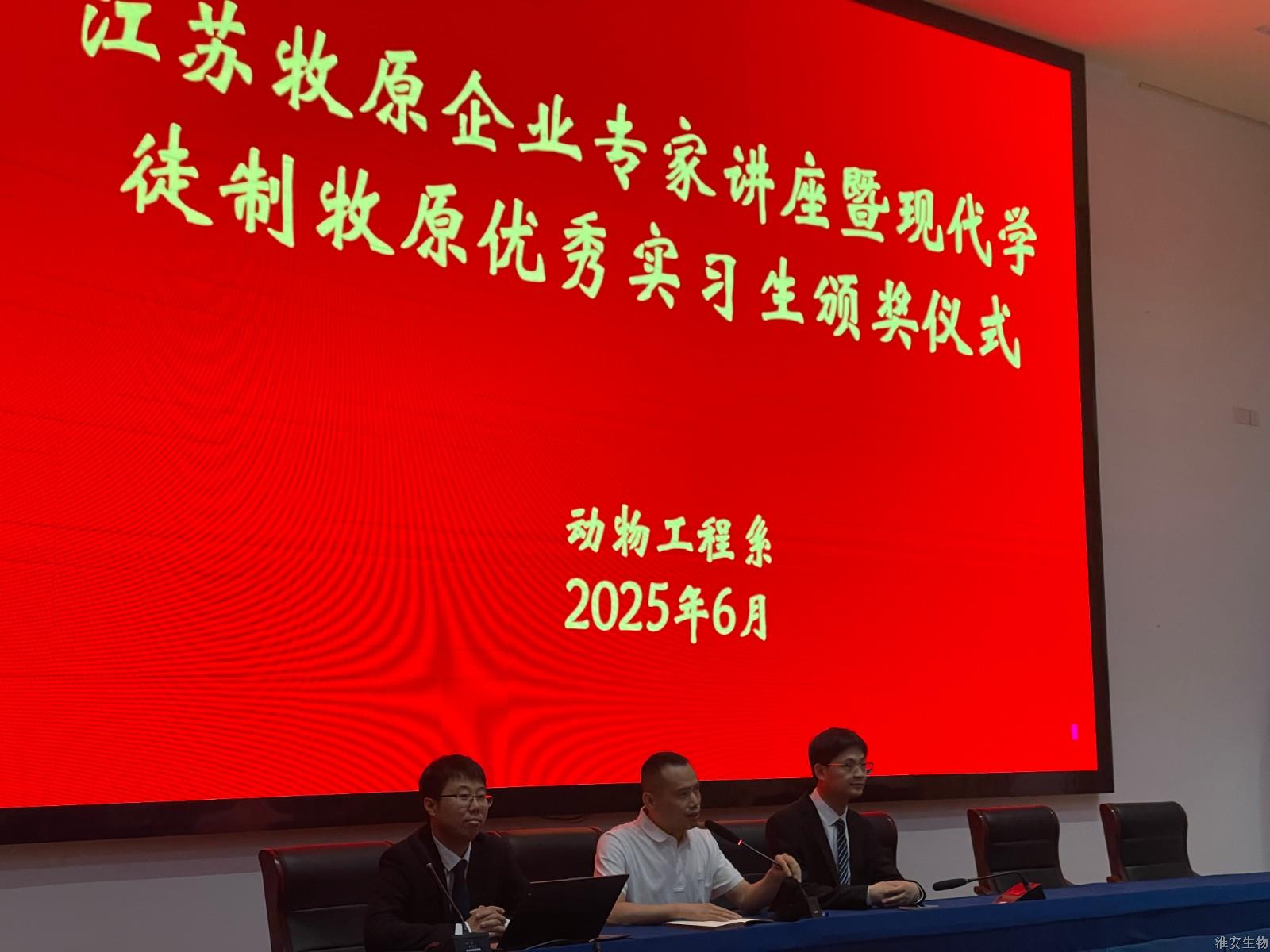 6月15日,江苏牧原楼房区域兽医总监姚克昌、人资负责人雷帅启、人资专员丁蓉一行三人来到开展企业进校园宣讲活动,并为优秀实习生颁发荣誉证书和奖金。牧高21级全体学生、班主任认真听取了讲座,动物工程系主任陈剑主持了宣讲和表彰活动。