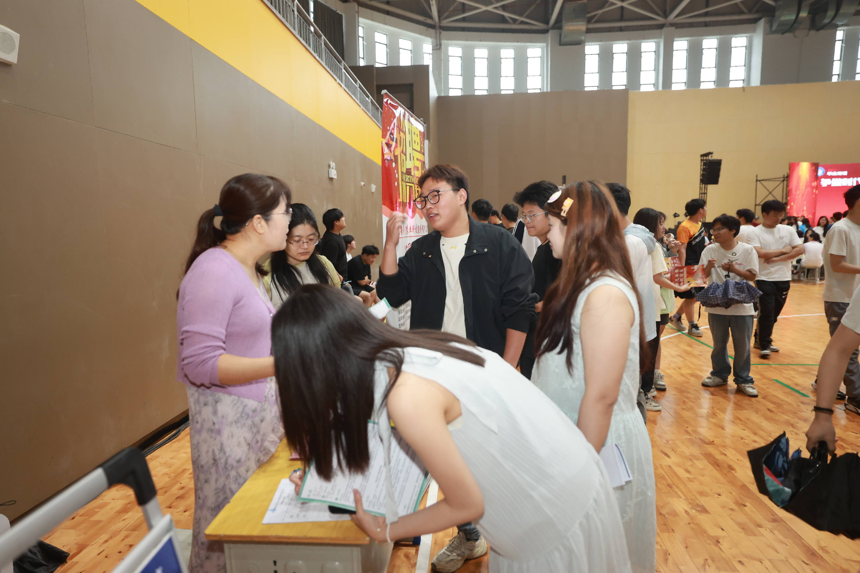 双选会现场布置有序,各行各业的企业齐聚一堂。前来应聘的毕业生在展台前认真地阅读岗位需求,无论是毕业生还是招聘单位的工作人员热情高涨,大家都面带笑容,毕业生手持精心准备的简历,怀揣着对未来的憧憬与期待,整个现场弥漫着热烈而融洽的氛围。每个企业展位前咨询面试学生排着长队,毕业生积极与企业代表进行面对面沟通交流,了解企业发展前景、生产规模、生产工艺、招聘岗位、人才要求、工作环境、生活条件、职业发展、薪酬待遇等。每个企业展位桌上摆放宣传图册,桌前摆放企业展牌,上面写有该企业相关信息和人才需求,让学生充分了解企业招聘信息。招聘单位通过分发宣传册、咨询答疑等形式详细介绍企业概况、岗位需求、发展空间和薪资福利等。整个双选会现场,学生们的热情与活力成为了最亮丽的风景线,交流互动,氛围热烈。据统计,当日315名学生与企业达成合作意向。