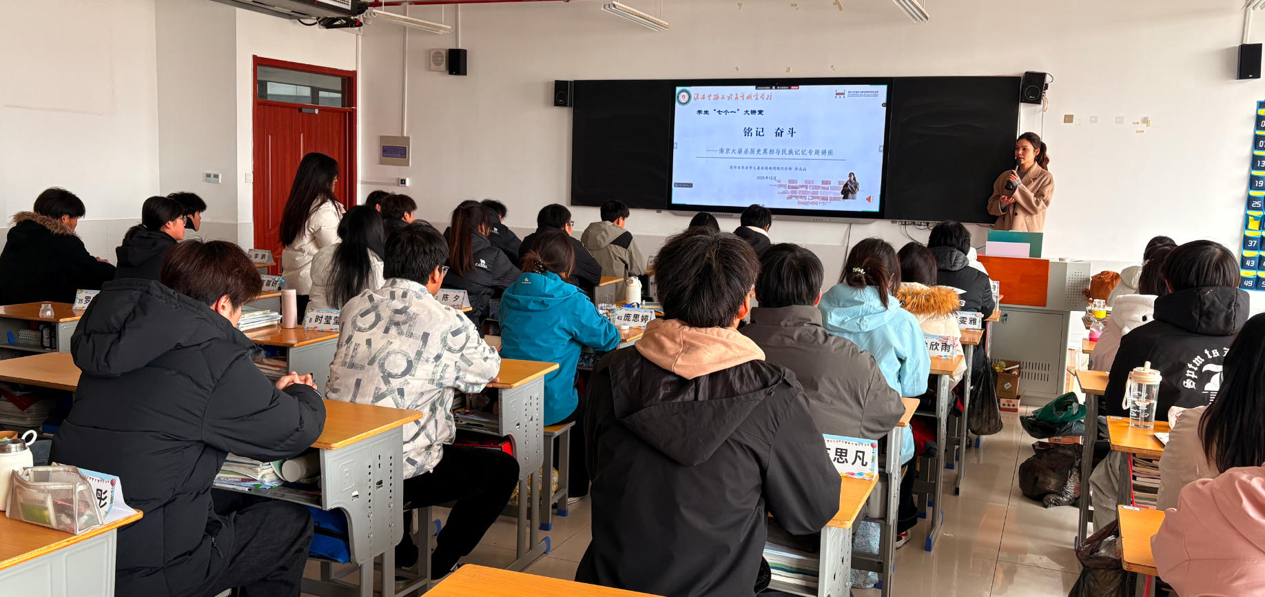 根据学校“七个一”工作机制“每月一期学生大讲堂”工作安排,2025年12月10日,南京大屠杀死难者国家公祭日来临之际,我校特邀侵华日军南京大屠杀遇难同胞纪念馆研究员许晶晶老师,开展《“铭记・奋斗”—南京大屠杀历史真相与民族记忆》专题讲座。全校师生将通过线上参与的方式,共同追忆民族苦难历史,凝聚砥砺奋进的精神力量。