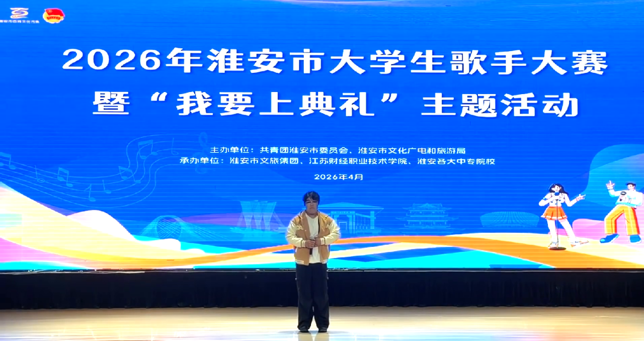 4月18日下午,由共青团淮安市委员会、淮安市文化广电和旅游局联合主办的“‘淮’抱青春 音你而燃”大学生歌手大赛决赛在里运河中洲岛圆满落幕。经过层层选拔,来自全市各高校的18位优秀选手同台竞技,最终我校微高2501班查语桐同学凭借出色表现荣获优秀奖。她以歌声传递热爱、用舞台诠释青春,展现了淮农学子昂扬向上的精神风貌,为观众留下深刻印象。