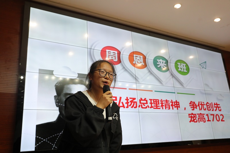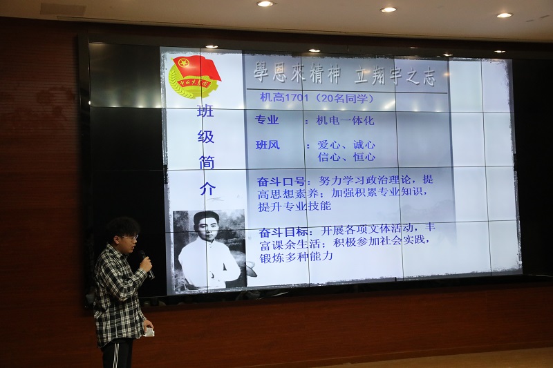 学生主持人简要介绍了我校创建“周恩来班”活动的宗旨和开展历程,对本届“周恩来班”的创建情况、申报情况以及评审要求予以说明。校团委副书记陈逸林希望所有参展班级代表要深刻领会并紧紧围绕“周恩来精神”,充分展示、认真答辩,相互学习、共同提高,真正做到以伟人风范为引领,以实际行动诠释、践行伟人精神。