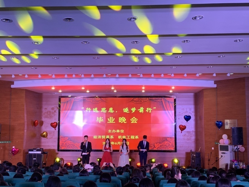 6月10日晚,“行远思恩 逐梦前行” 毕业晚会在多功能报告厅举行,此次活动由经济贸易系、机电工程系团总支、学生会联合策划举行。副校长禹立馨、学生处处长马力、团委副书记陈逸林、两系的系领导、教师代表及全体同学共同欣赏了这场视听盛宴。