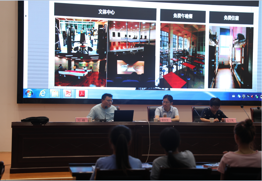 刘峰对两家实习企业进行介绍,重点向与会师生介绍了企业工作地点、工作环境、生活环境、薪资待遇、发展空间等。