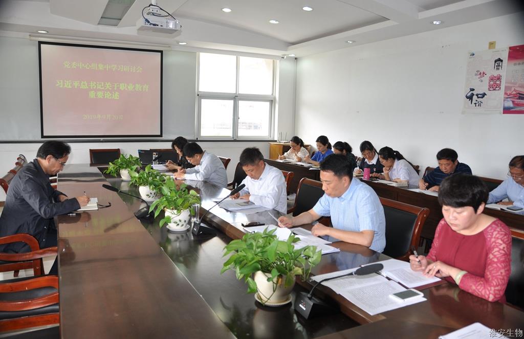 9月20日上午,我校党委中心组(扩大)在行政楼三楼会议室召开了姚晓东书记在全市教育大会讲话精神、习近平总书记关于职业教育最新讲话精神和《国家职业教育改革实施方案》精神专题学习会。校领导班子成员、动物工程系、植物工程系党支部部分党员代表参加了学习会。