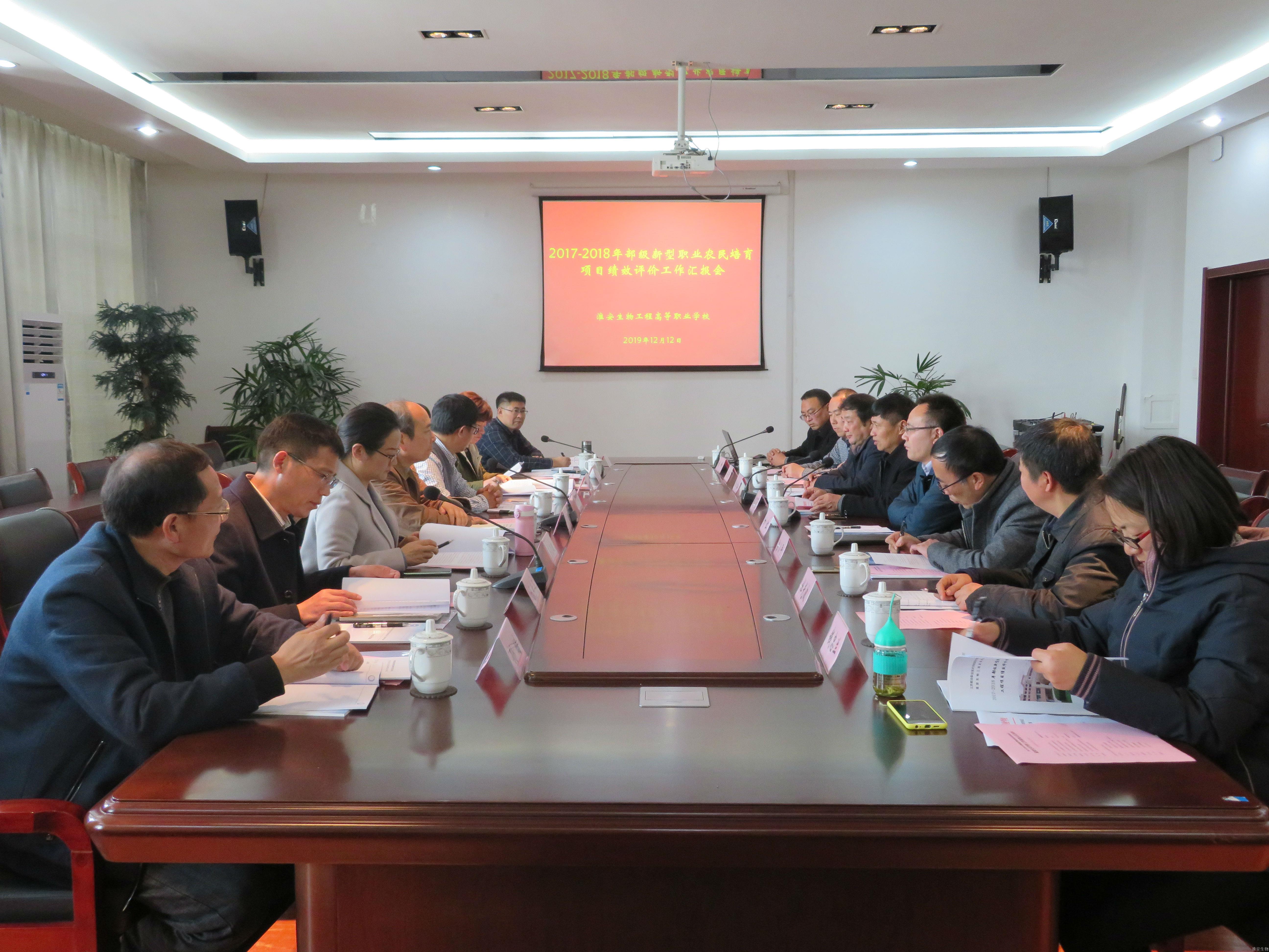 绩效考评会由考评组组长、江苏农牧科技职业技术学院继续教育学院奚照寿院长主持,学校赵守东副校长致欢迎辞,介绍绩效考评情况,刘江处长从任务实施情况、组织实施、培训效果、资金使用、培训亮点五个方面向考核组专家进行了汇报。