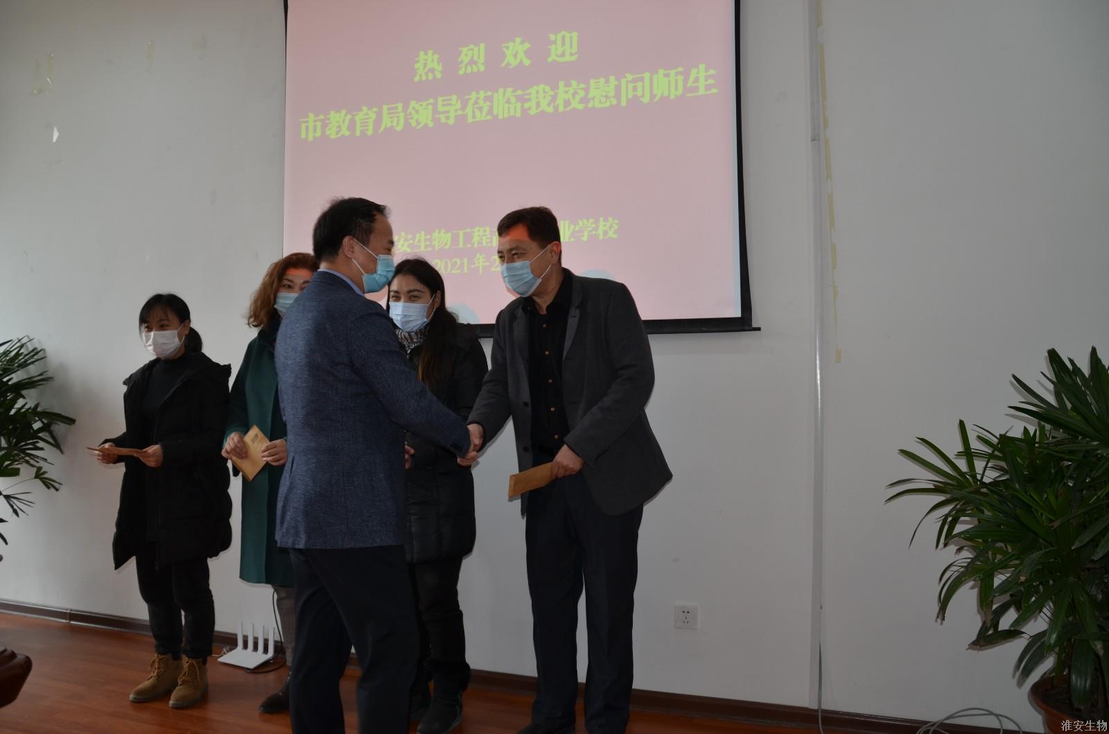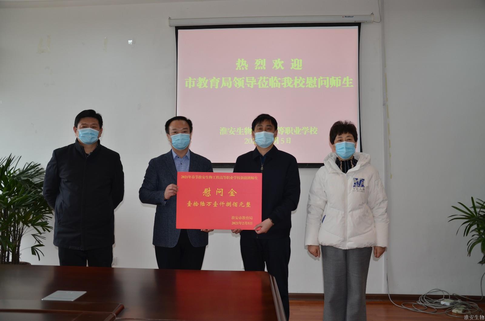2月5日,淮安市委教育工委书记、市教育局局长皇甫立同,副局长谷玉红、胡金浪及相关处室领导一行莅临淮安生物工程学校慰问新疆内职班师生。校党委书记、校长崔步银,副校长李慧陪同慰问。