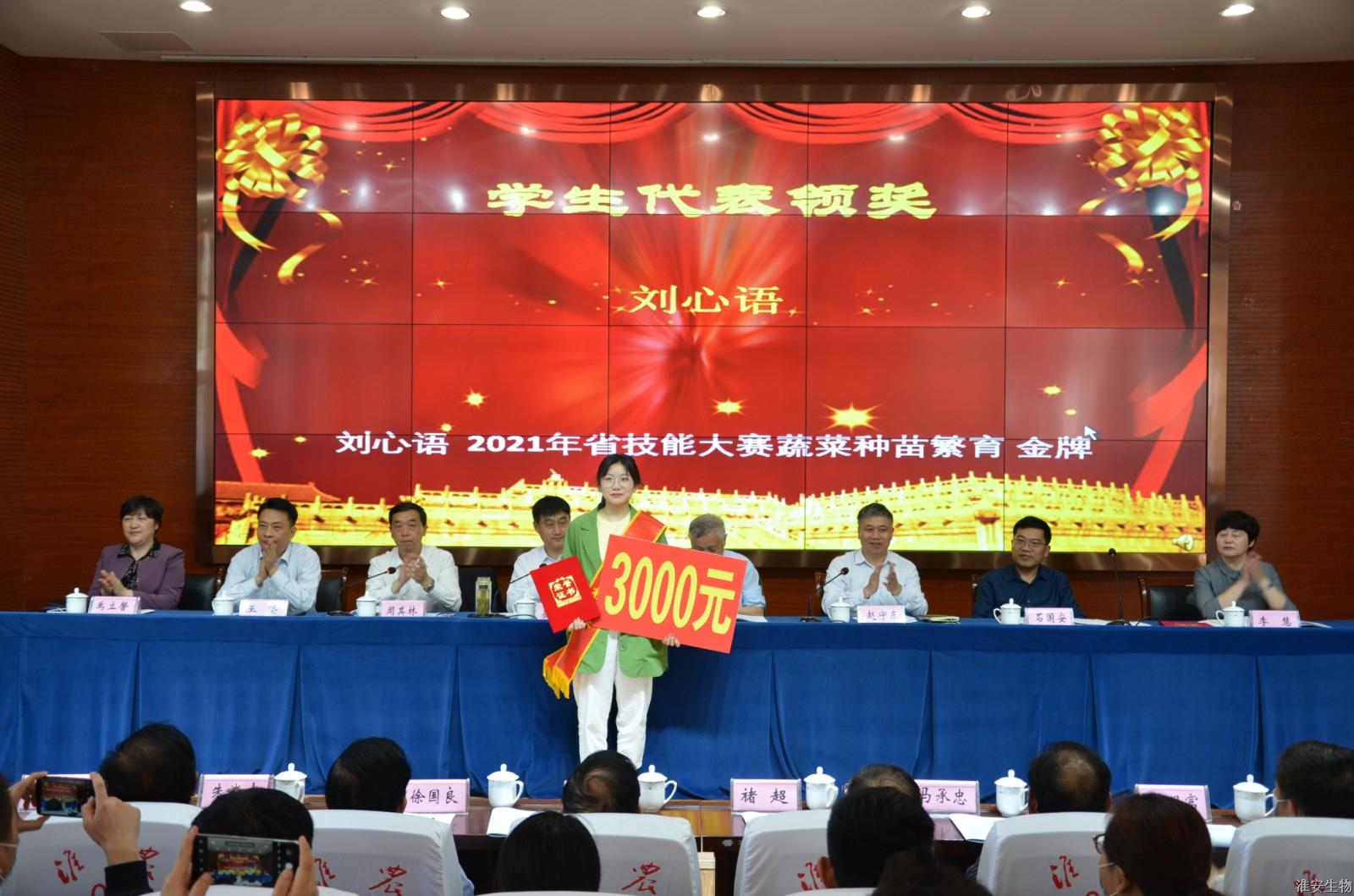 大会伊始,副校长赵守东宣读了2021年省技能大赛表彰决定。在喜庆的乐声中,在2021年江苏省职业院校技能大赛中力克群雄、斩获5金8银10铜的获奖师生及其指导教师登台领奖。
