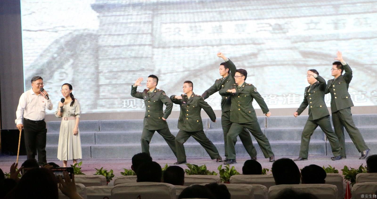淮安生物工程学校工会选送的节目诗表演《红星照我去奋斗》,爷爷向孙女讲述了革命战争年代狼牙山五壮士的故事。“革命先辈坚韧不拔、奋勇向前的精神怎不叫人热泪盈眶!身处新时代的青年教师要将他们的光荣革命传统传承下去……为祖国培养出更多的栋梁之才!”孙女表示要传承革命传统,在党的光辉照耀下奋勇前行,为祖国培养更多的栋梁之才!令人振奋的声声诵读展现了淮农人昂扬向上的精神风貌与积极进取的奋斗英姿,精彩的演绎赢得了现场观众的阵阵掌声。