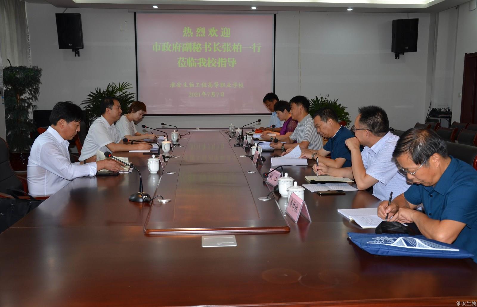 7月7日下午,淮安市政府副秘书长张柏一行莅临淮安生物工程学校视察调研学校升格发展情况。