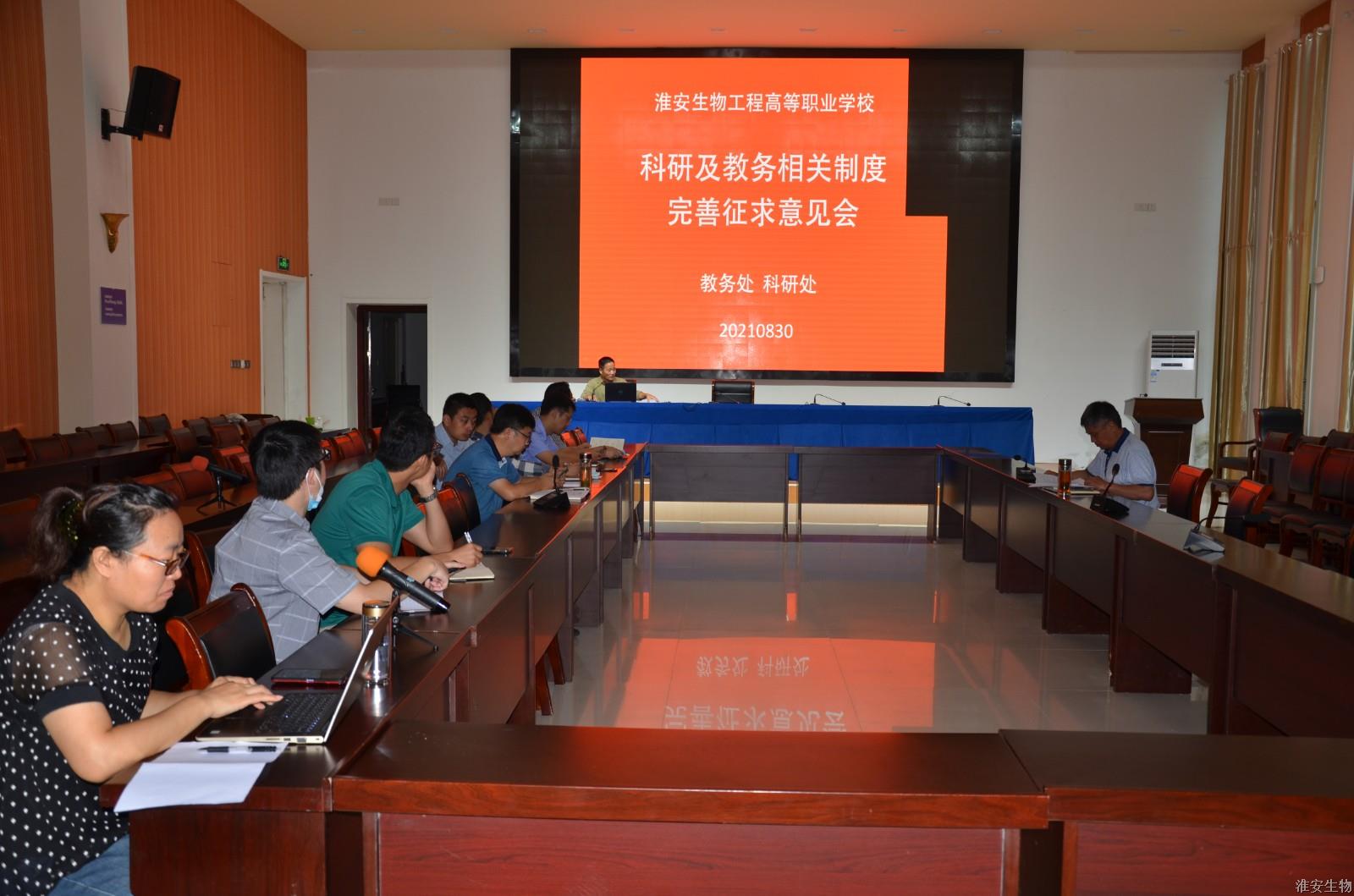 8月30日上午九点,在新农业实训楼124会议室,由教务处、科研处牵头召开科研、教务配套制度完善征求意见会,副校长赵守东出席会议,教务处处长马力、科研处处长仲春雷、各系部主任参加了会议。会议由赵守东主持。