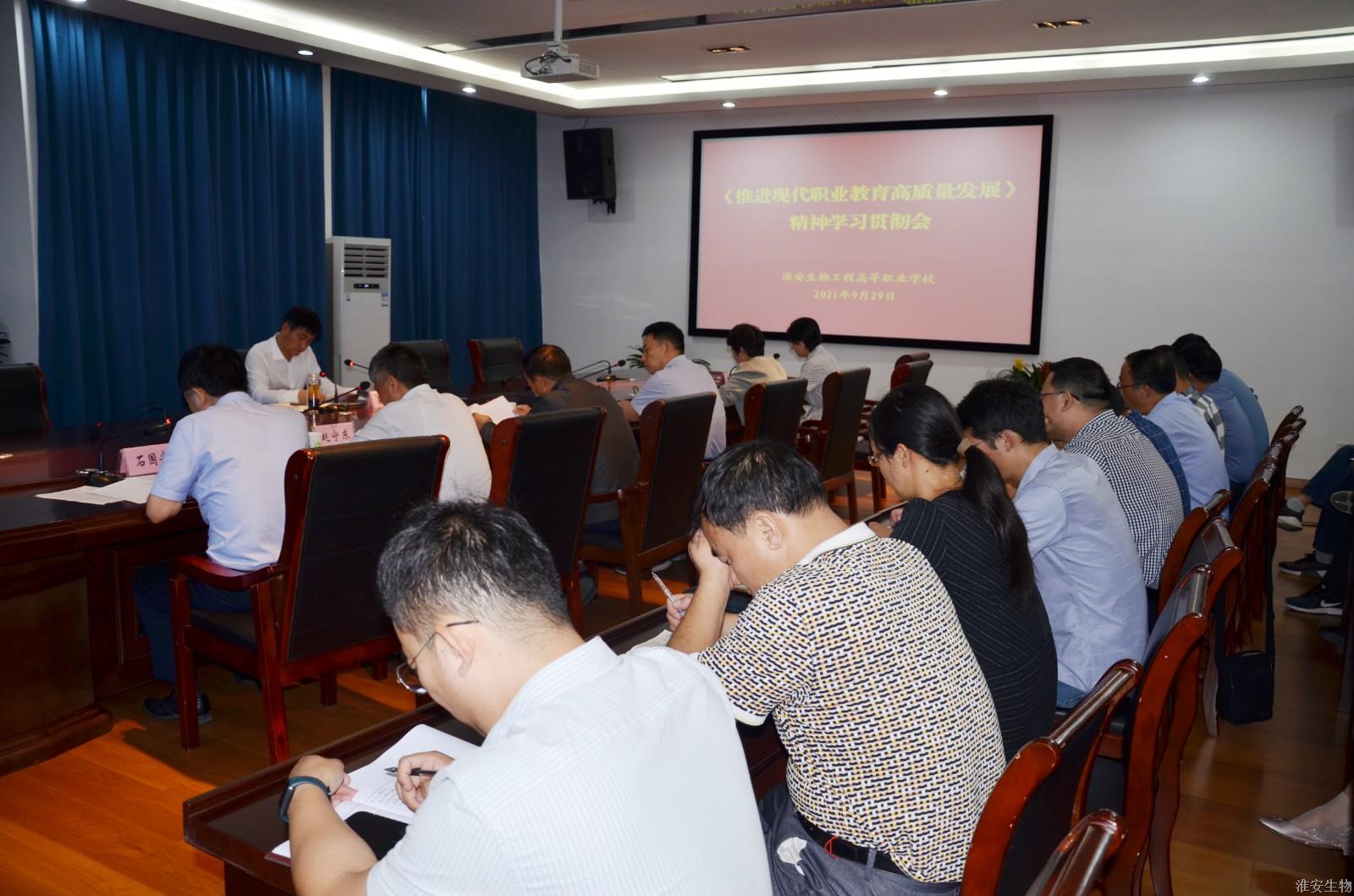 9月29日,淮安生物工程学校组织相关人员专题学习中共中央办公厅、国务院办公厅印发的《关于推动现代职业教育高质量发展的意见》,党委副书记石国安传达了意见精神,党委书记、校长崔步银主持并讲话。