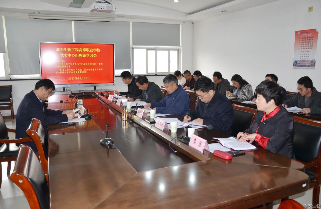 10 月 21日下午,淮安生物工程学校党委中心组学习会在行政楼三楼会议室召开,会议主要学习习近平总书记在中央党校(国家行政学院)中青年干部培训班开班式上作的题为《信念坚定、对党忠诚、实事求是、担当作为,努力成为可堪大用能担重任的栋梁之才》的重要讲话精神、习近平总书记在第七十六届联合国大会上作的题为《坚定信心、共克时艰,共建更加美好的世界》的重要讲话精神。校领导班子成员参加会议,校党委书记、校长崔步银主持会议。