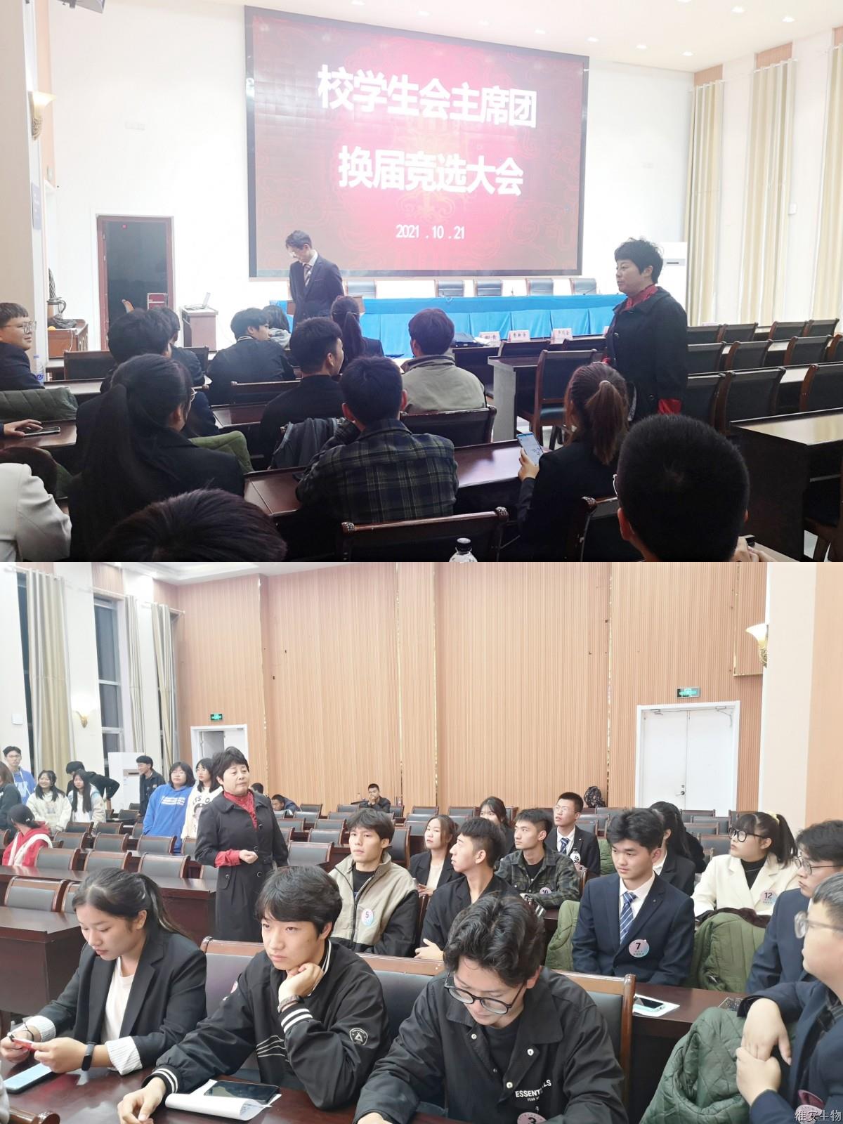 10月21日晚,我校在农业实训楼124隆重举行第34届校学生会主席团换届竞选活动。副校长李慧,学生处处长史云国,副处长胡春林、新疆部主任严同云,学生会各部门分管老师杨慧雨、费新宇、邵青出席了活动。本次活动由新媒体中心刘毅同学主持。