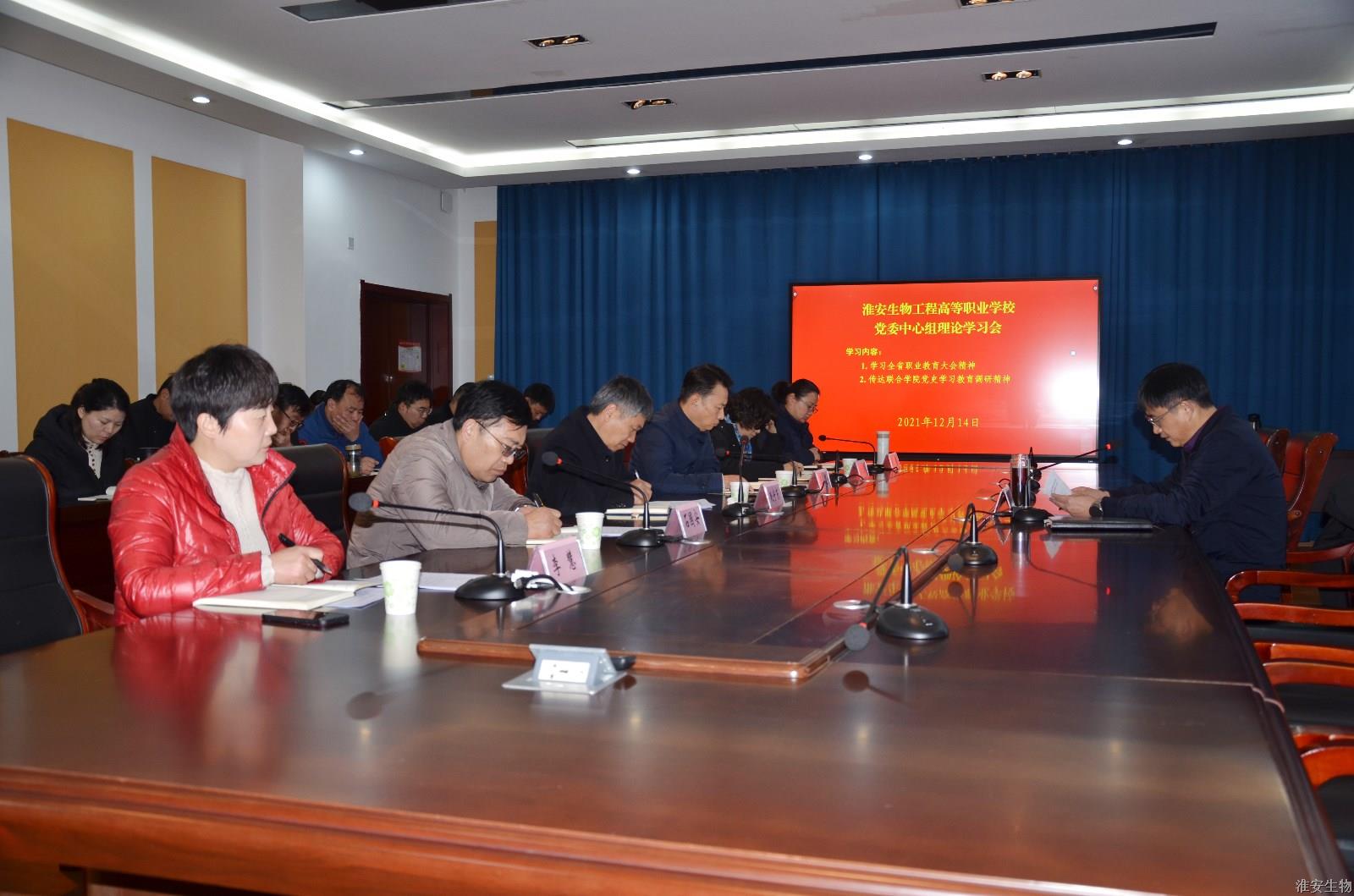 12月14日上午,淮安生物工程高等职业学校在119会议室召开党委中心组学习会,学习2021年12月10日全省职业教育大会精神、2021年12月7日江苏联合职业技术学院党史学习教育调研指导精神。校领导班子成员参加会议,校党委书记、校长崔步银主持会议并讲话。