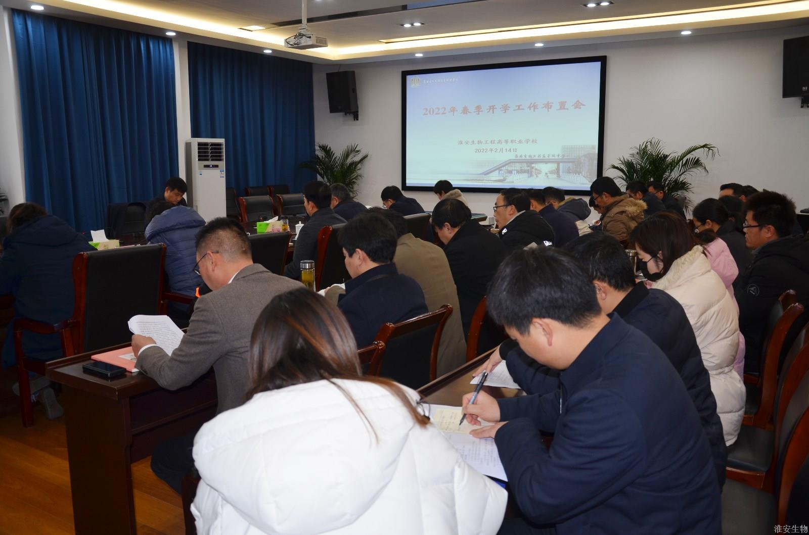 为做好新学期开学准备工作,顺利迎接学生开学,2月14日下午,淮安生物工程学校在新农业实训楼119会议室召开2022年春季开学工作布置会,开启新学期奋斗新篇章。校领导班子成员,各部门负责人参加会议。