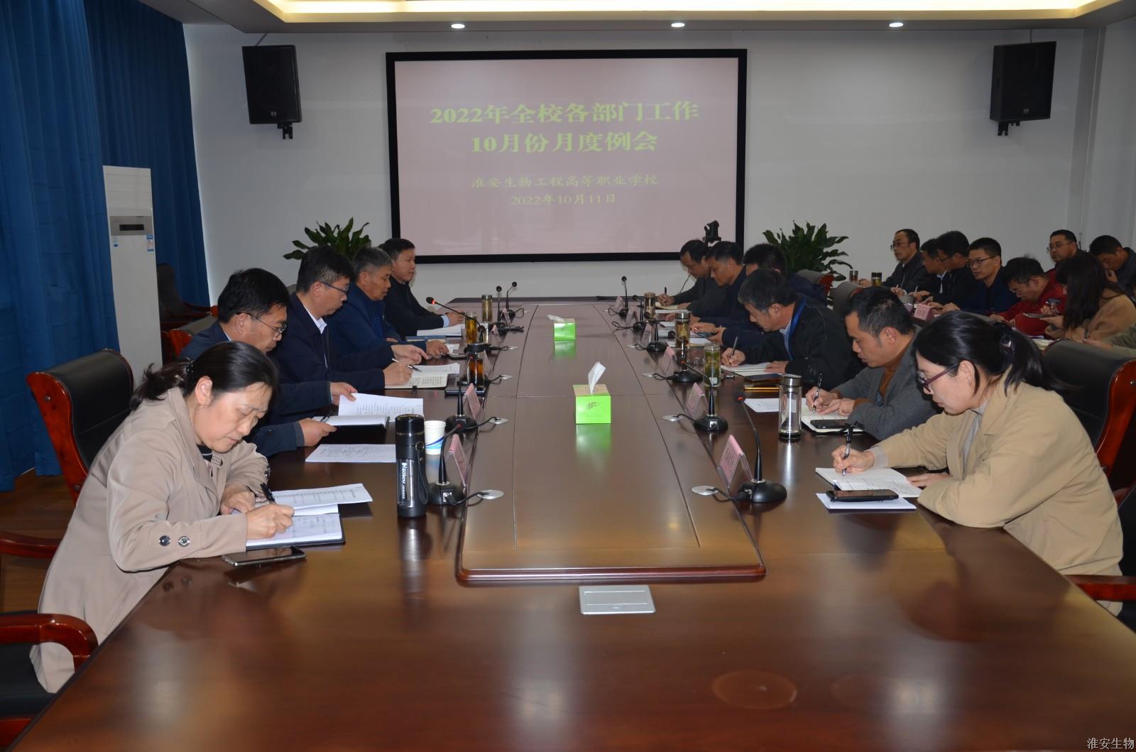 10月11日下午,淮安生物工程学校在农业实训楼119会议室召开2022年全校各部门工作10月份月度例会。校领导班子,各处室、系部负责人参加会议。副校长赵守东主持会议。