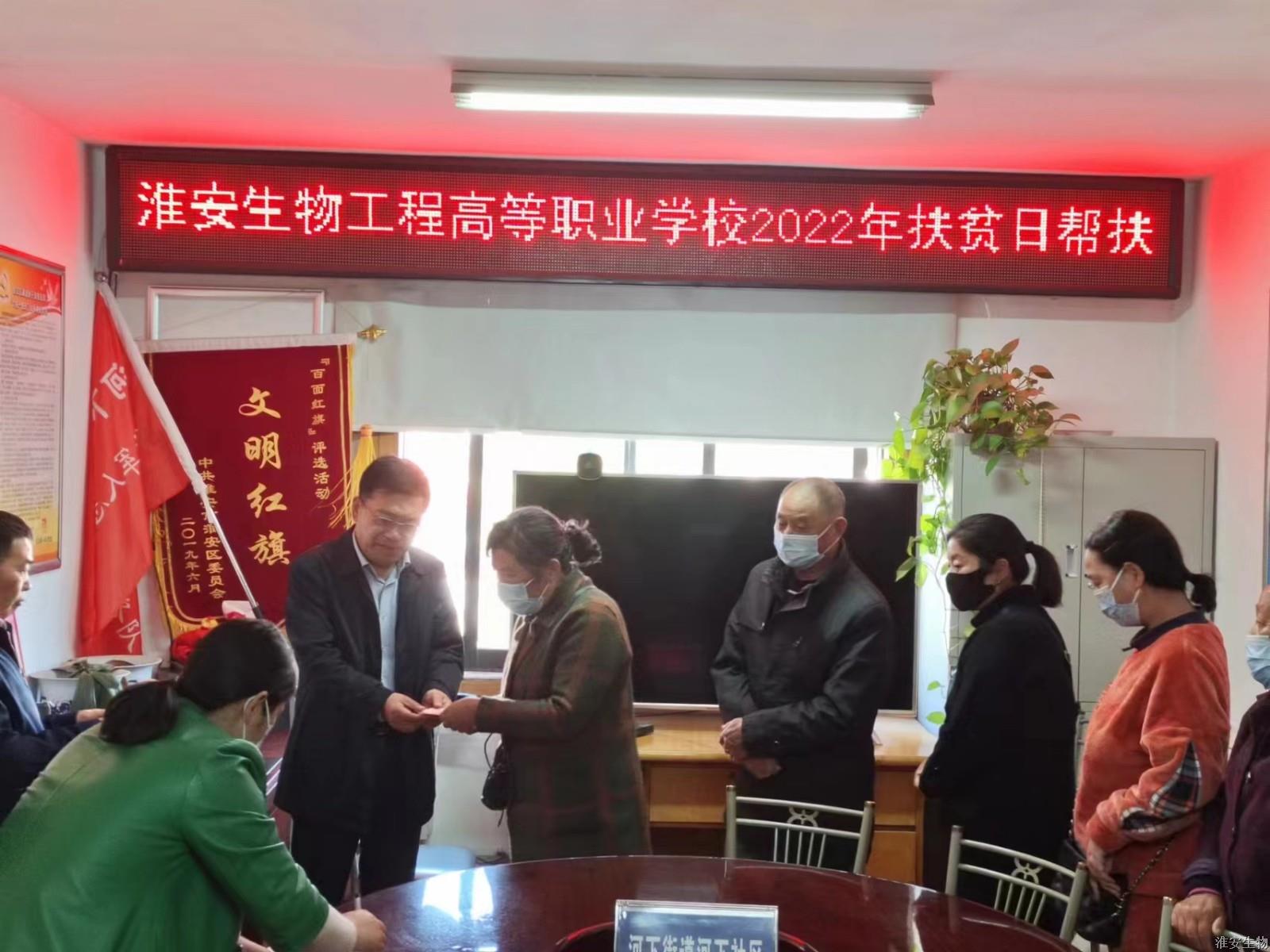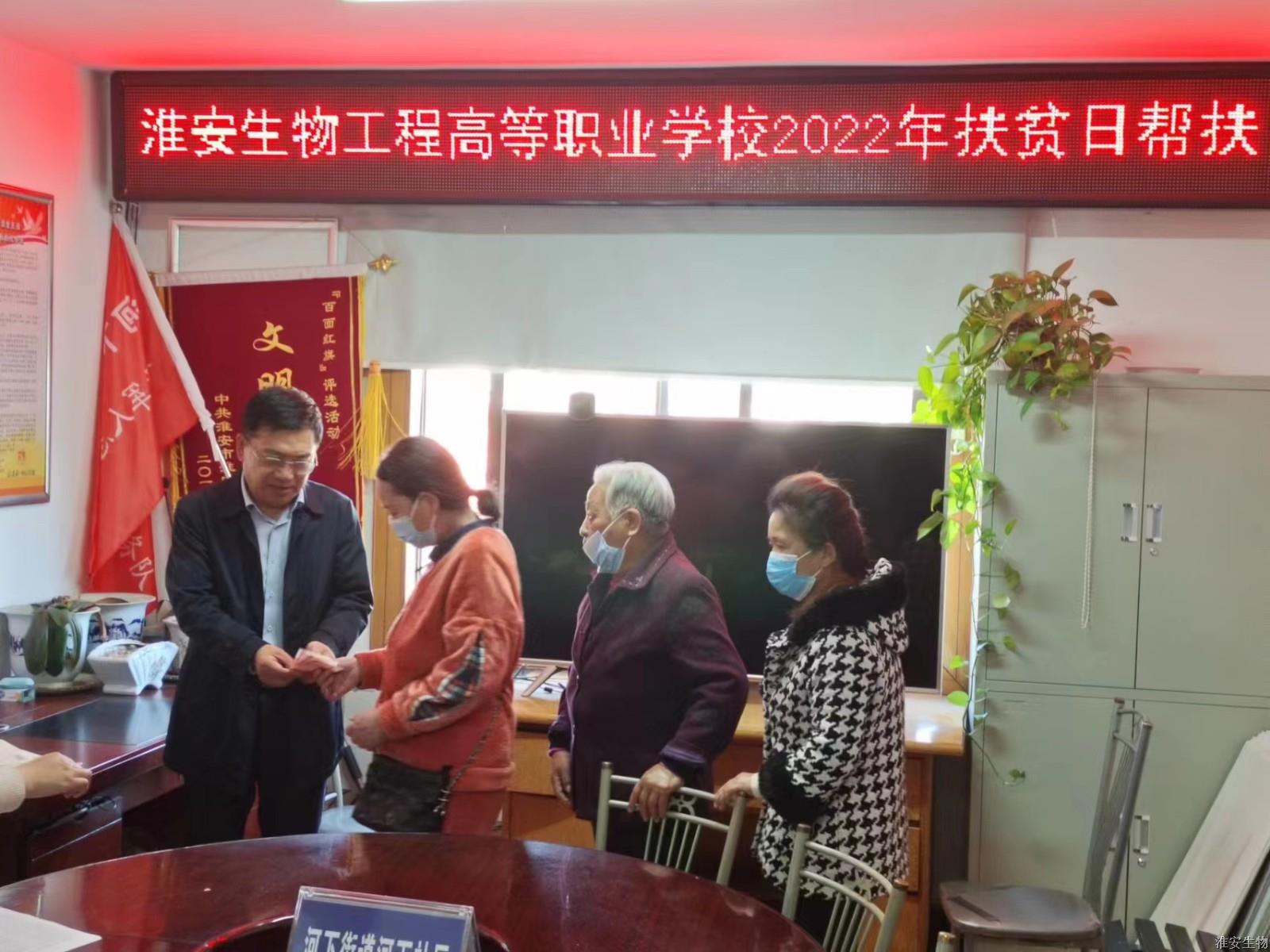 2022年10月17日是全国第九个“扶贫日”。当日下午,淮安生物工程学校党委副书记石国安在河下社区书记朱培超的陪同下,慰问了20户河下社区困难家庭,共计发放6000元的慰问金。