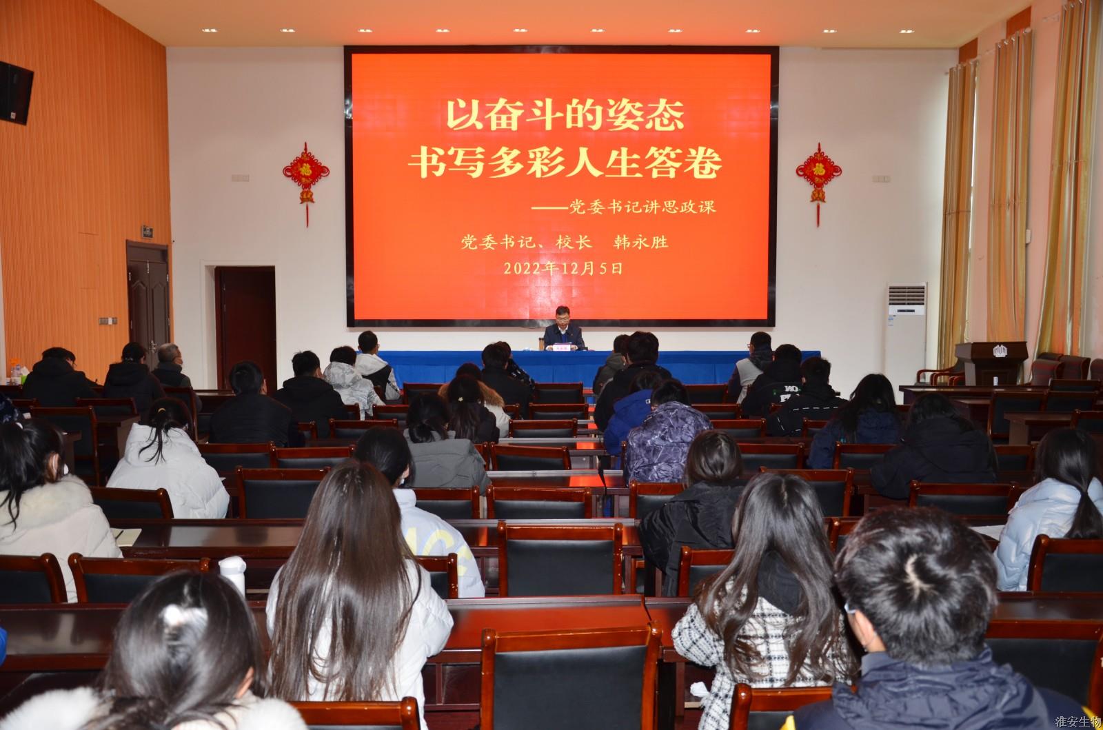 2022年12月5日上午,淮安生物工程学校党委书记、校长韩永胜在实训楼124会议室主持召开了一堂别开生面的思政课。
