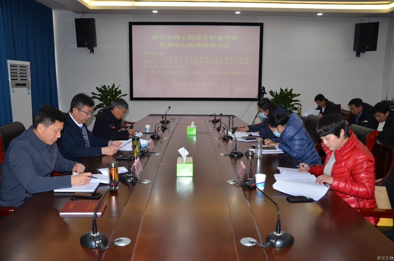 12月7日下午,淮安生物工程高等职业学校在农业实训楼119会议室召开党委中心组学习扩大会。校党委领导班子成员和人事处、教务处、学生处、合作交流处、民族教育处、六系一部主要负责人参加会议,党委书记、校长韩永胜主持会议。