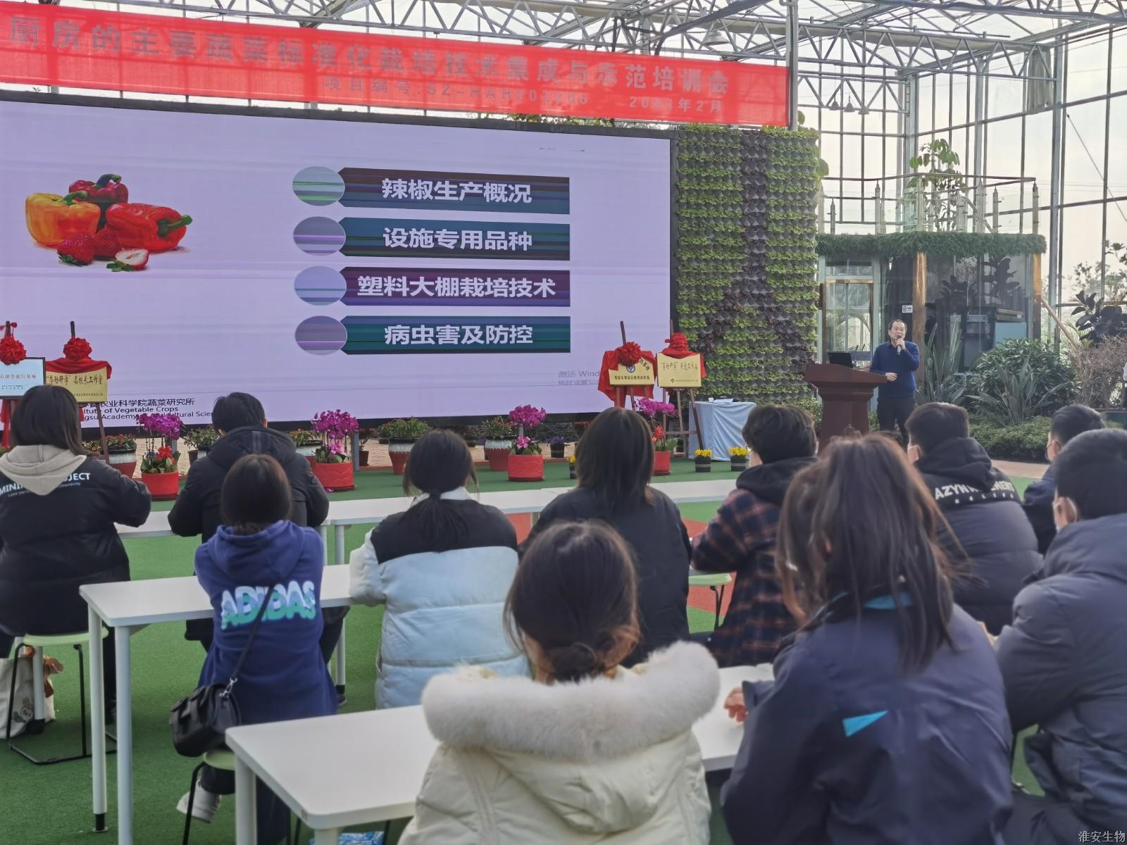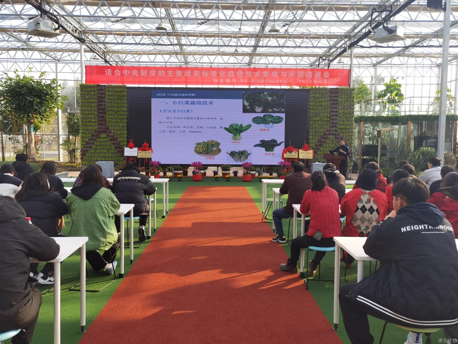 为扎实开展2022年省科技帮促项目《适合中央厨房的主要蔬菜标准化栽培技术集成与示范》工作,加快推进项目实施进度,2月14日,我校邀请江苏省农业科学院蔬菜所副所长刁卫平博士和王述彬教授在淮安区施河镇百斯特现代农业有限公司开展蔬菜栽培现场技术培训。项目主持人李慧,项目组核心成员仲春雷、徐暄、陈绕生、熊亚琴等老师会同项目承担单位为培训提供了场地服务与保障。施河镇蔬菜种植大户、百斯特农业发展有限公司技术工人及我校园艺技术专业30多名学生共90余人参加了此次培训。