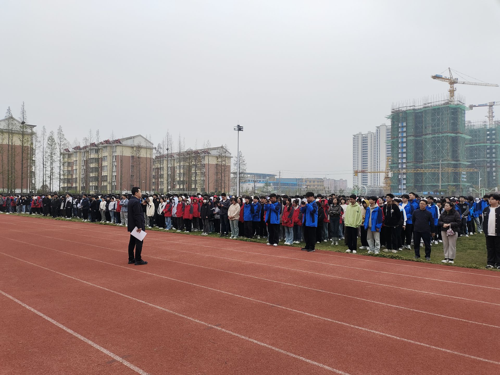 应急疏散演练结束后,副校长沈涵哲对本次消防应急疏散演练活动进行了点评。他感谢参与人员的辛勤付出,肯定同学们的快速撤离和良好纪律,同时希望全校师生不断增强安全意识,提高应急避险和自救能力,为建设更高水平的平安校园贡献力量。