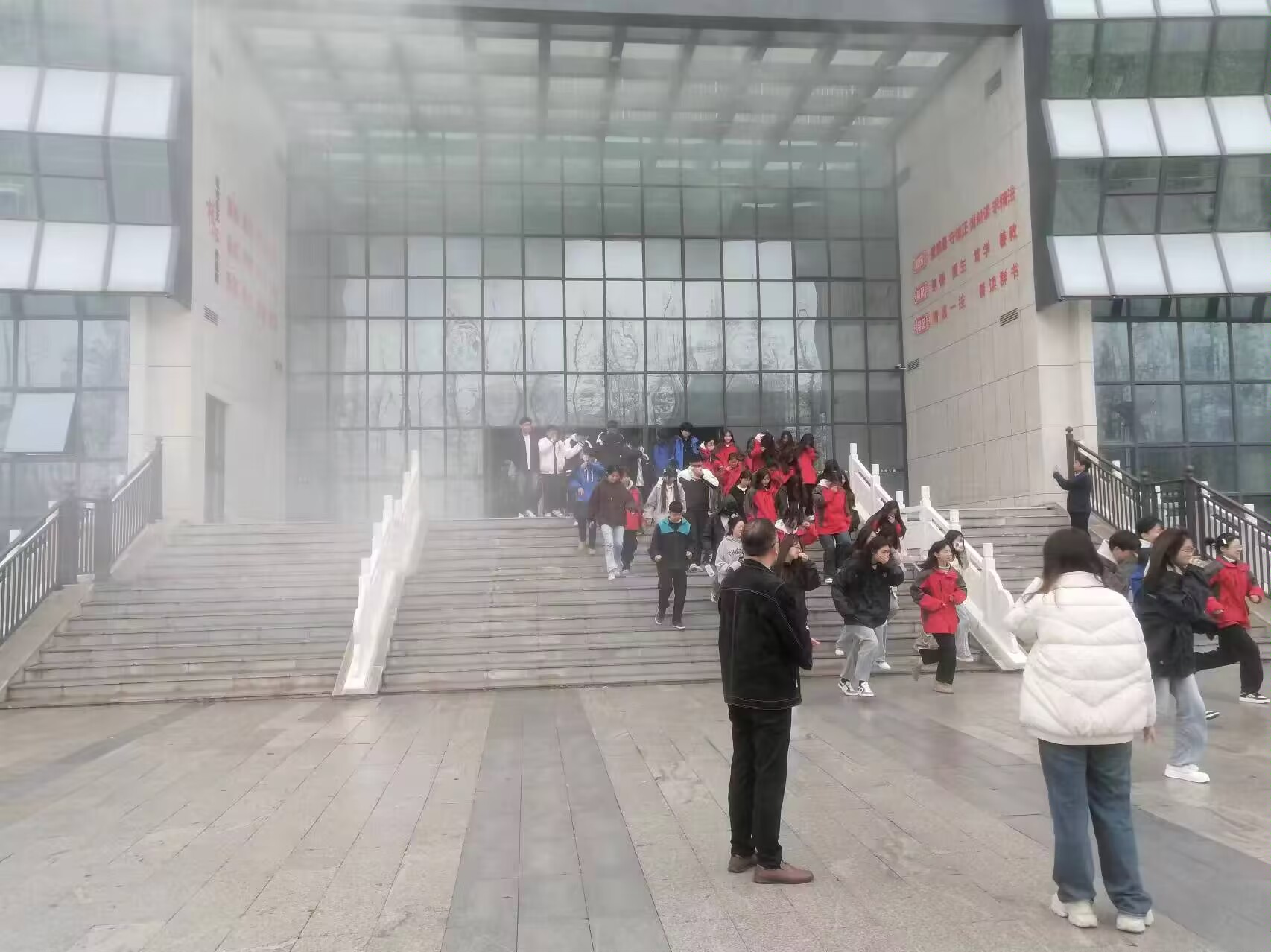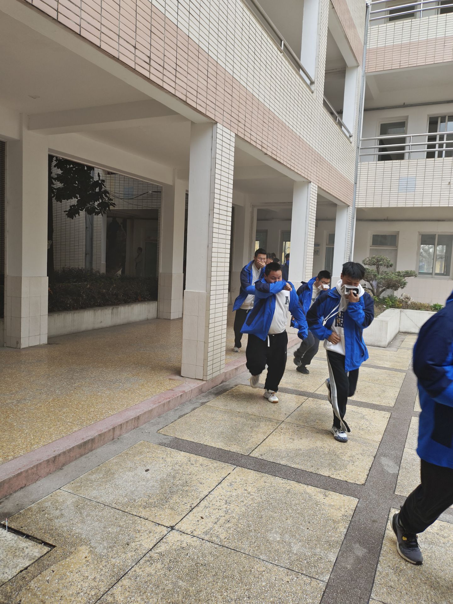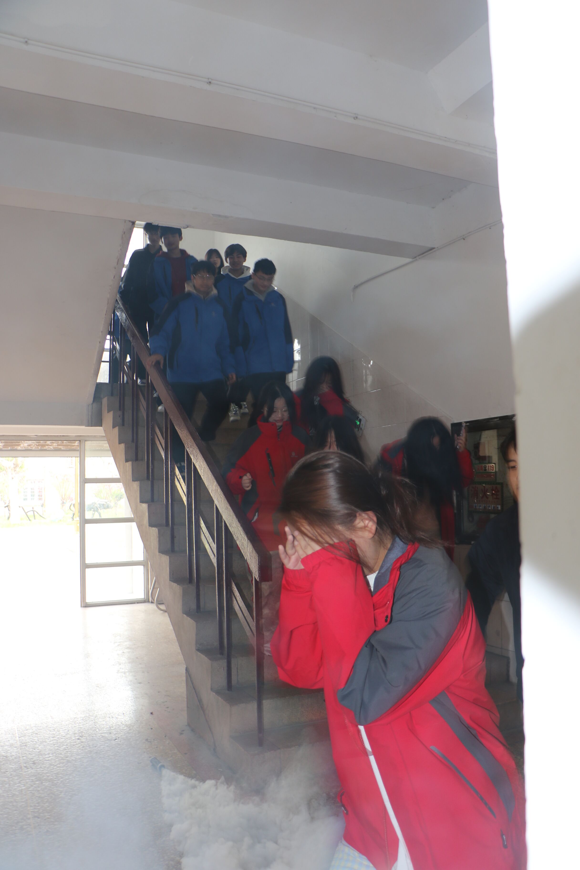 4月8日上午9点20分,各点位人员全部到位,疏散演练活动正式开始。警报声响起,综合楼、主教学楼、西教学楼内烟雾弥漫,模拟火灾现场。各班学生在任课老师带领下,在楼层引导老师的引导下,正确、迅速、有序地撤离了“火灾”现场。整个疏散活动,各系部、各相关处室组织到位,师生积极配合,快速撤离到安全区域,并向现场总指挥报告,达到预期效果。