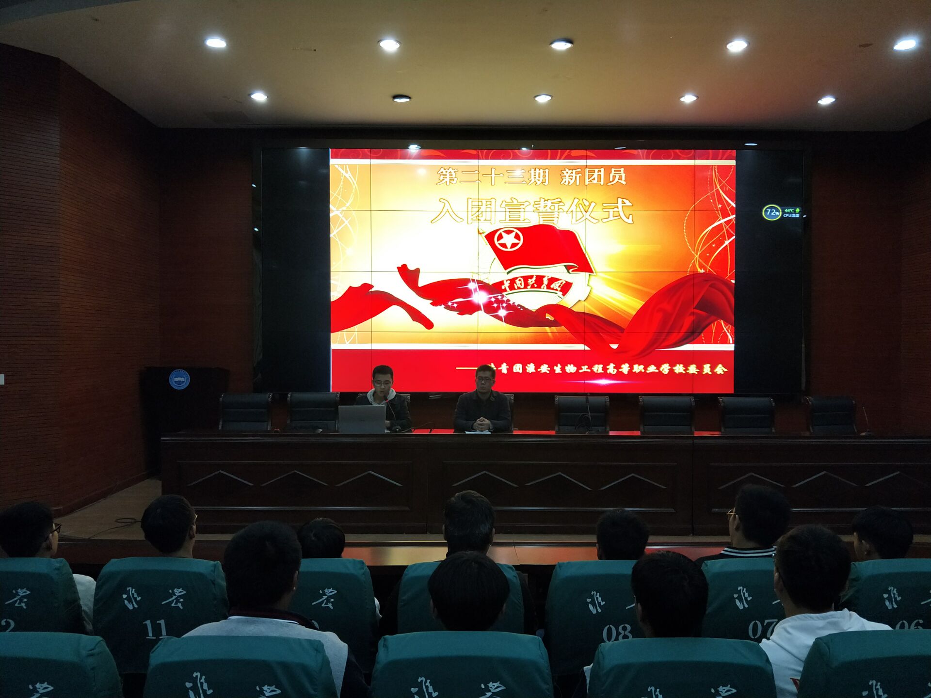 2018年10月30日晚,我校第23期新团员入团仪式在多功能报告厅举行。大会在气势磅礴的国歌声中拉开了帷幕。校团委组织部部长陆佳会同学宣布了经校团委考核、审批通过的30位新团员名单,并对这30位新团员加入中国共青团表示了祝贺,同时对新团员寄予了殷切希望,希望新团员们能时刻以共青团员的标准来严格要求自己,努力学习,将来为社会主义建设事业添砖加瓦。接着,在组织部副部长朱奥运同学的带领下,全体新团员一起庄严宣誓:“我志愿加入中国共产主义青年团,……”响亮的誓言代表了新团员的心声。