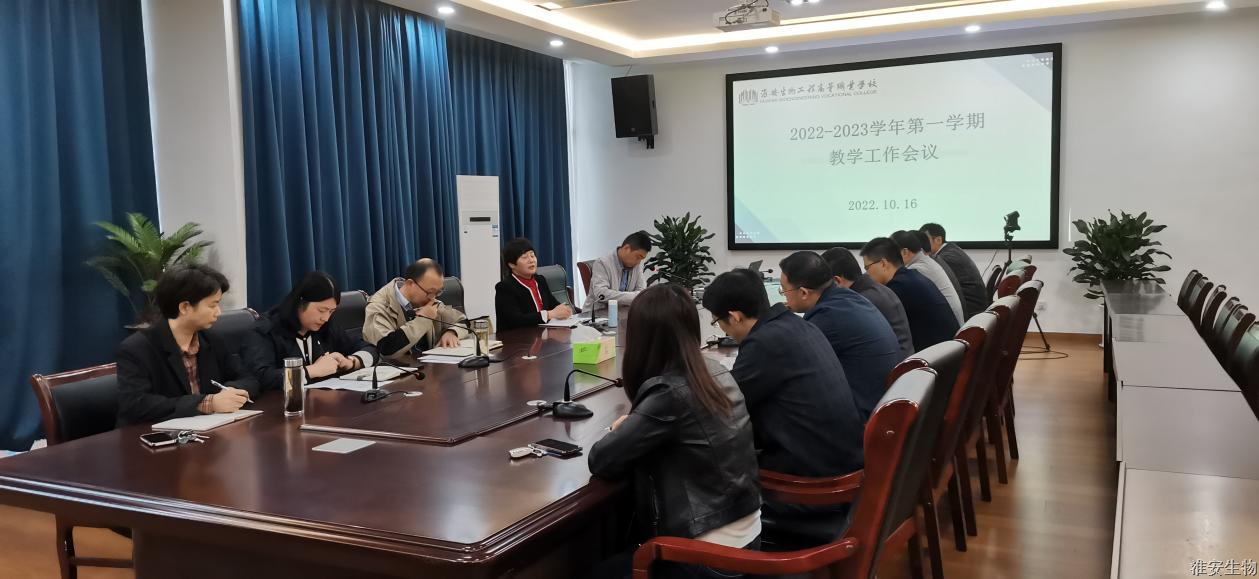 10月16日上午,我校在农业实训楼119会议室召开教学工作会议,副校长李慧、各系部主任、教学副主任、教务处相关人员参加了会议,教务处处长丁宁主持会议。