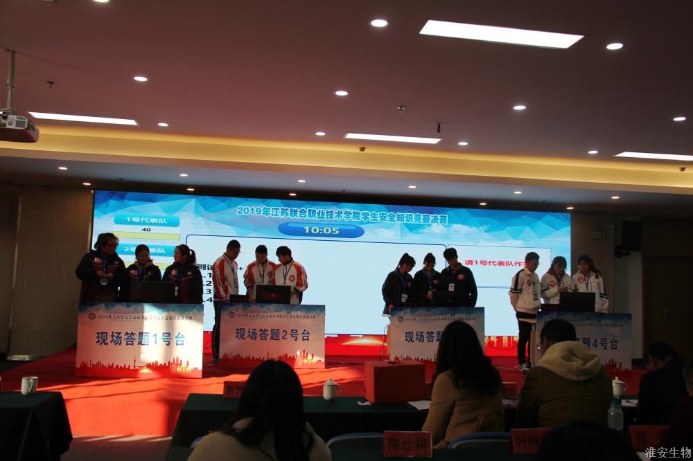 安全知识竞赛是江苏联合职业技术学院组织的安全教育系列活动赛项之一,由江苏联合职业技术学院主办,江苏交通技师学院、连云港中医药分院承办,于2019年10月份正式启动,本次活动得到所有分院(办学点)的积极响应和支持,决赛共分为笔试、抢答必答、情景模拟三个环节。