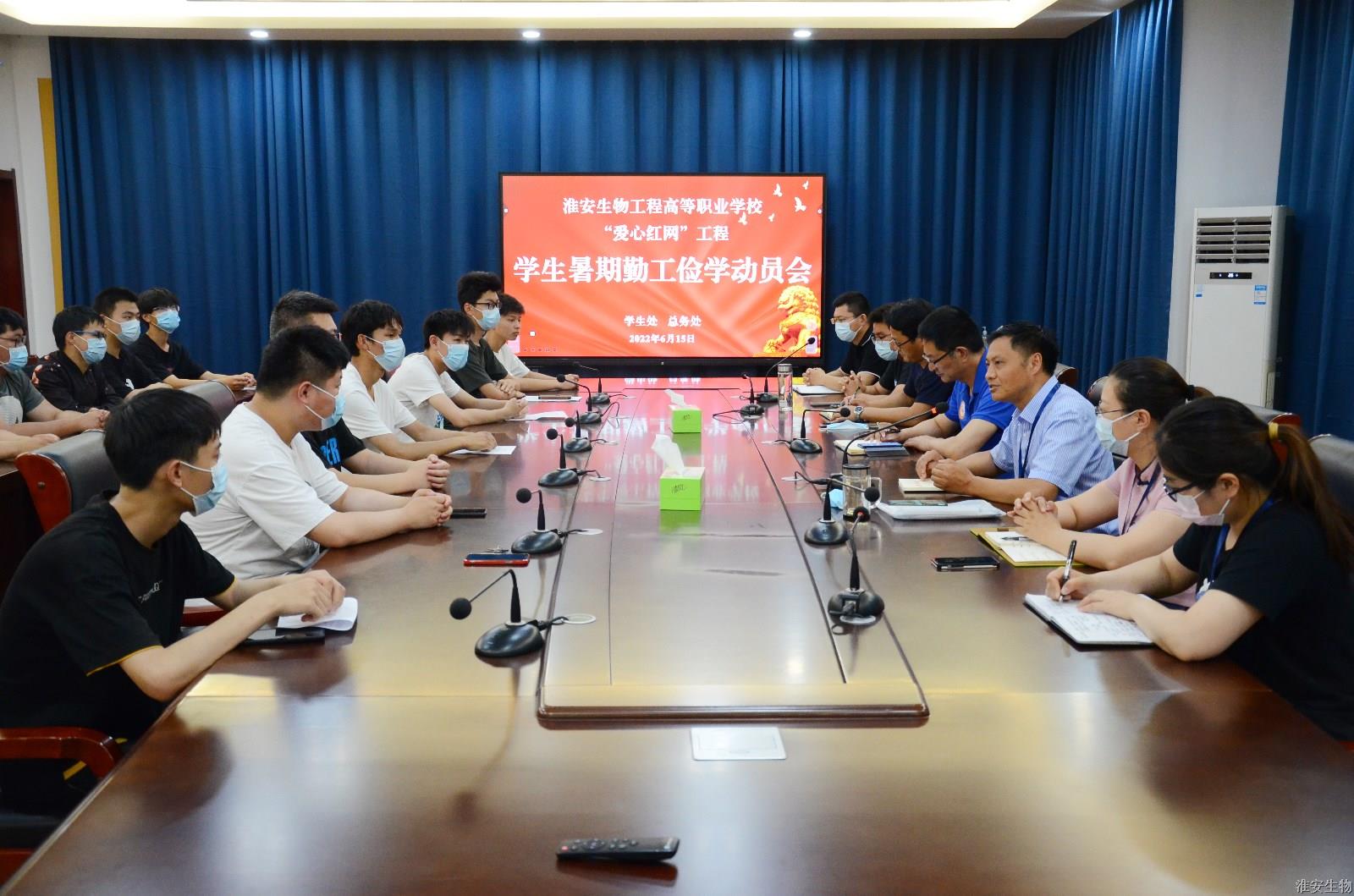 学生暑期勤工俭学是我校党建“爱心红网”项目的重要内容之一。6月15日中午,淮安生物工程学校在农业实训楼119会议室组织召开“爱心红网”工程——学生暑期勤工俭学动员会。总务处处长刘功洲,学生处处长史云国、副处长胡春林,总务处老师袁岩,学生处老师杨慧雨、徐培培、朱睿及暑期勤工俭学学生参加了会议。会议由史云国主持。