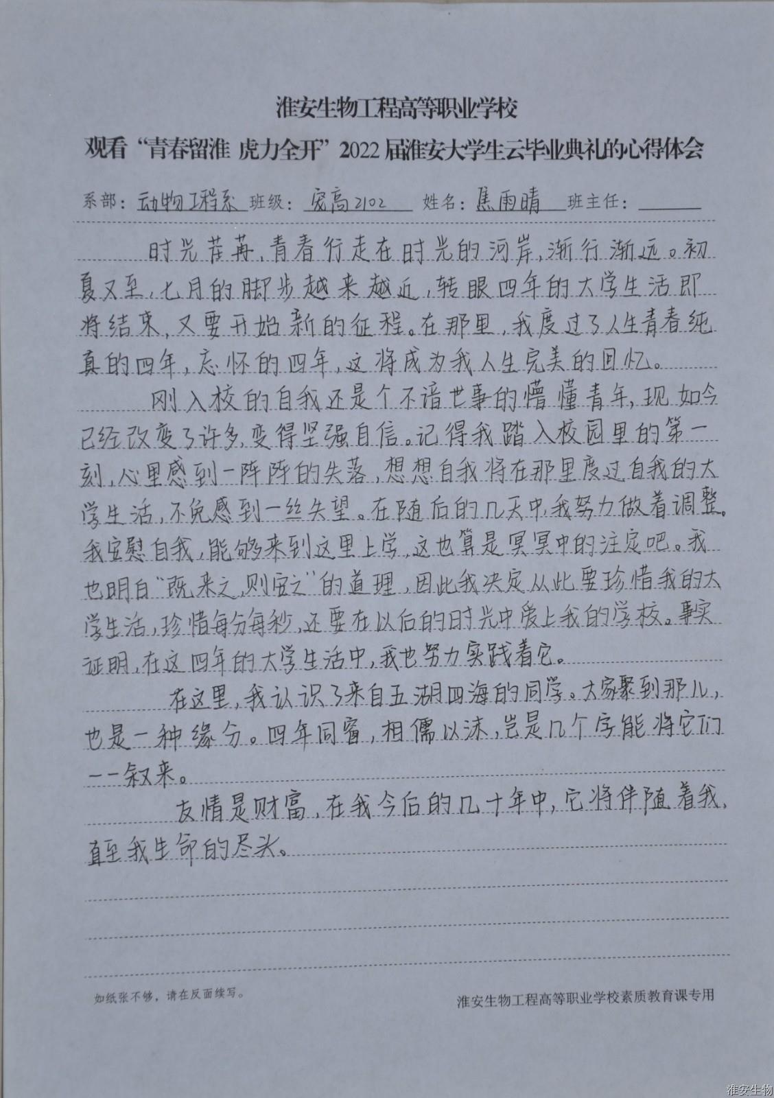 同学们认真收看2022届淮安大学生云毕业典礼,撰写心得体会,吐露心声,拍摄照片,录制短视频,发布朋友圈,积极宣传本次活动,为毕业生留在淮安创业就业、实现梦想助力加油。