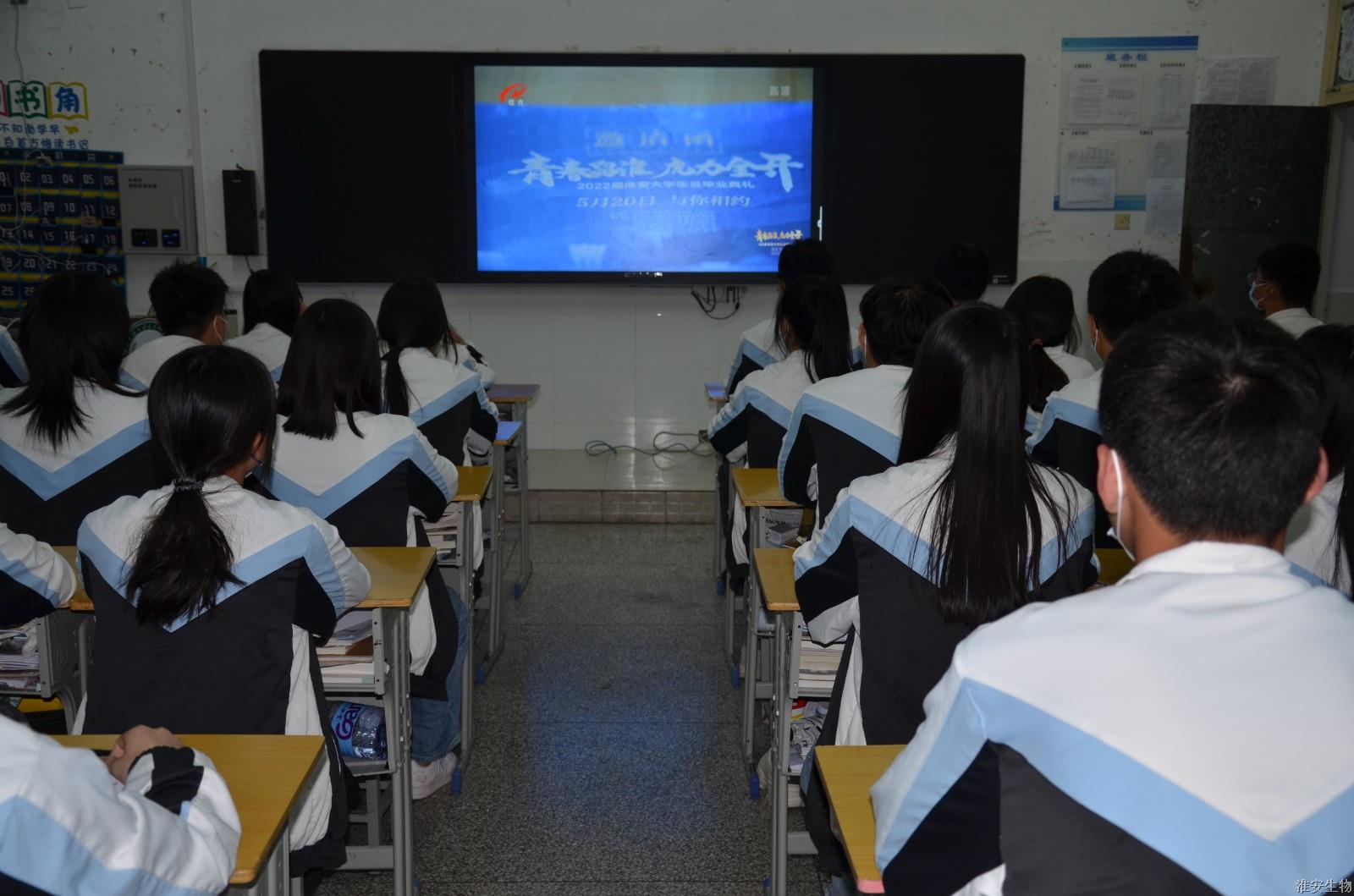 5月20日晚,市委、市政府为在淮应届大学生举办集体毕业典礼,送上一份真情告白。为响应号召,淮安生物工程学校组织全体在校生收看“青春留淮 虎力全开”2022届淮安大学生云毕业典礼。